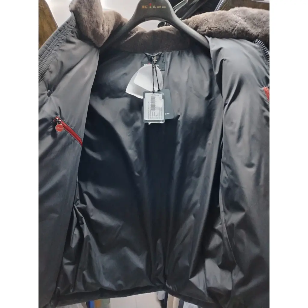 -Серый стеганый пуховик из смесовой шерсти от KITON.