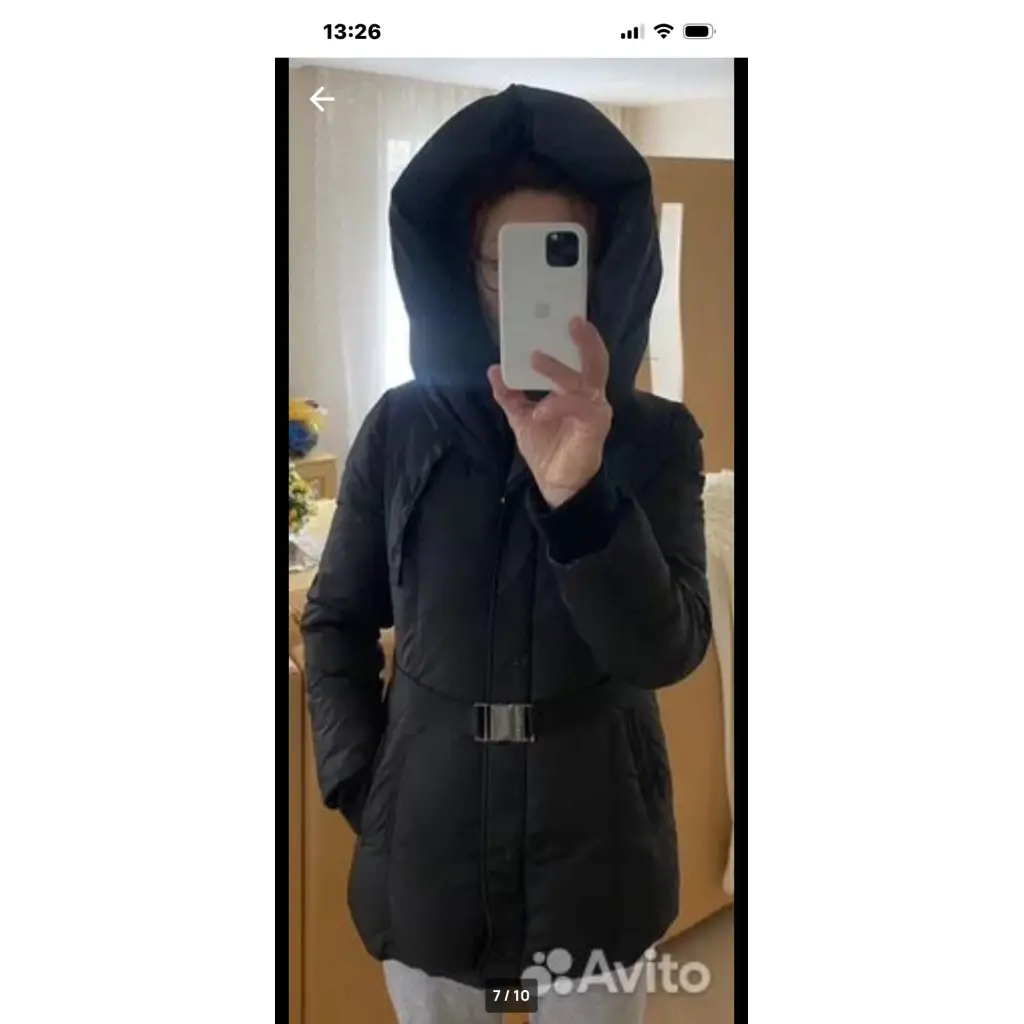 Цвет черный ,слегка притален Огромный капюшон воротник Серебристая фурнитура ,пояс После химчистки В идеальном состоянии мой рост 172