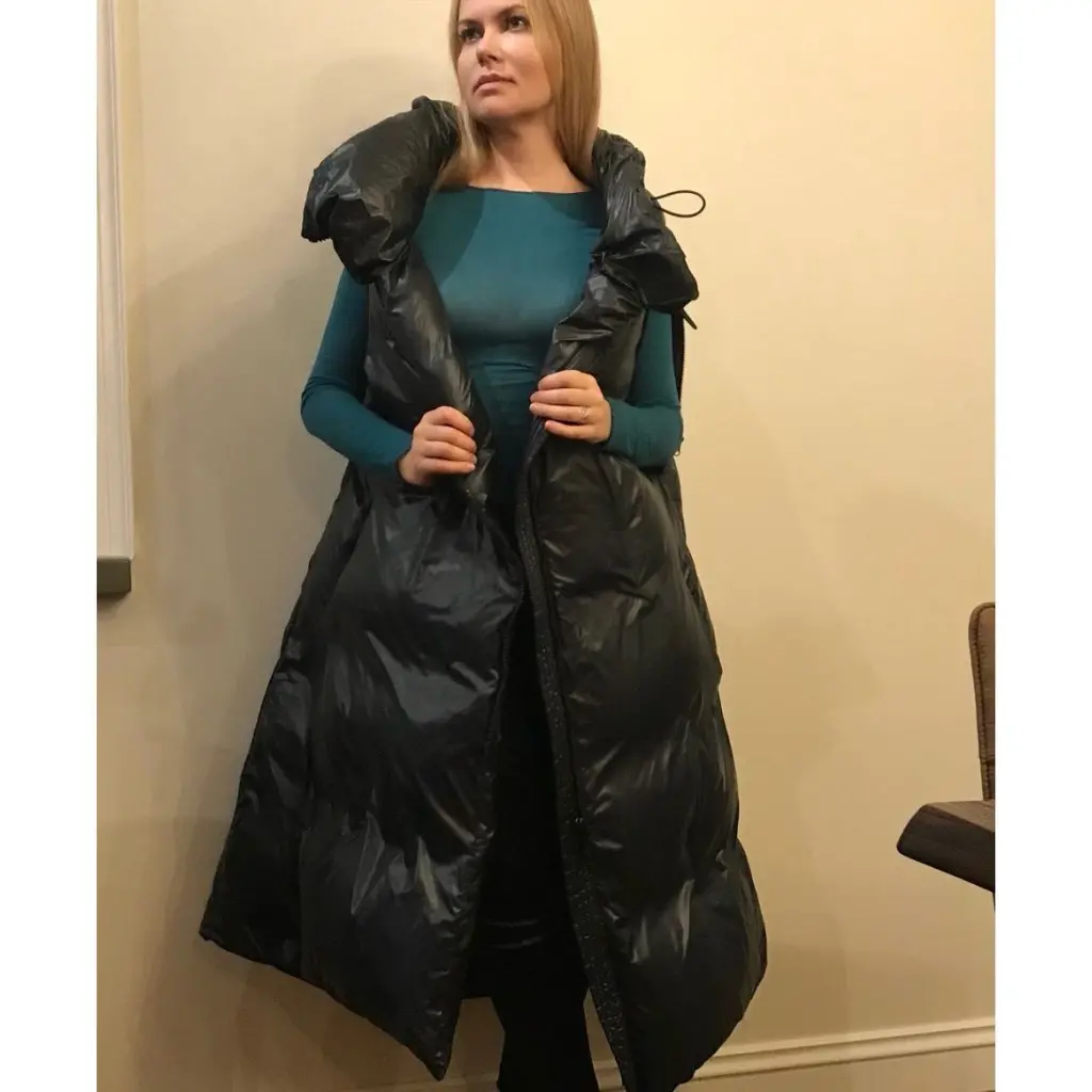 Тёплый стильный оверсайз пуховик трапецевидной формы на молнии, ворот регулируется кулисками, рукава на молнии, можно отстегнуть получается удлинённый жилет. Покупался на Farfetch Из нюансов потёртость молнии у основания и сам замочек