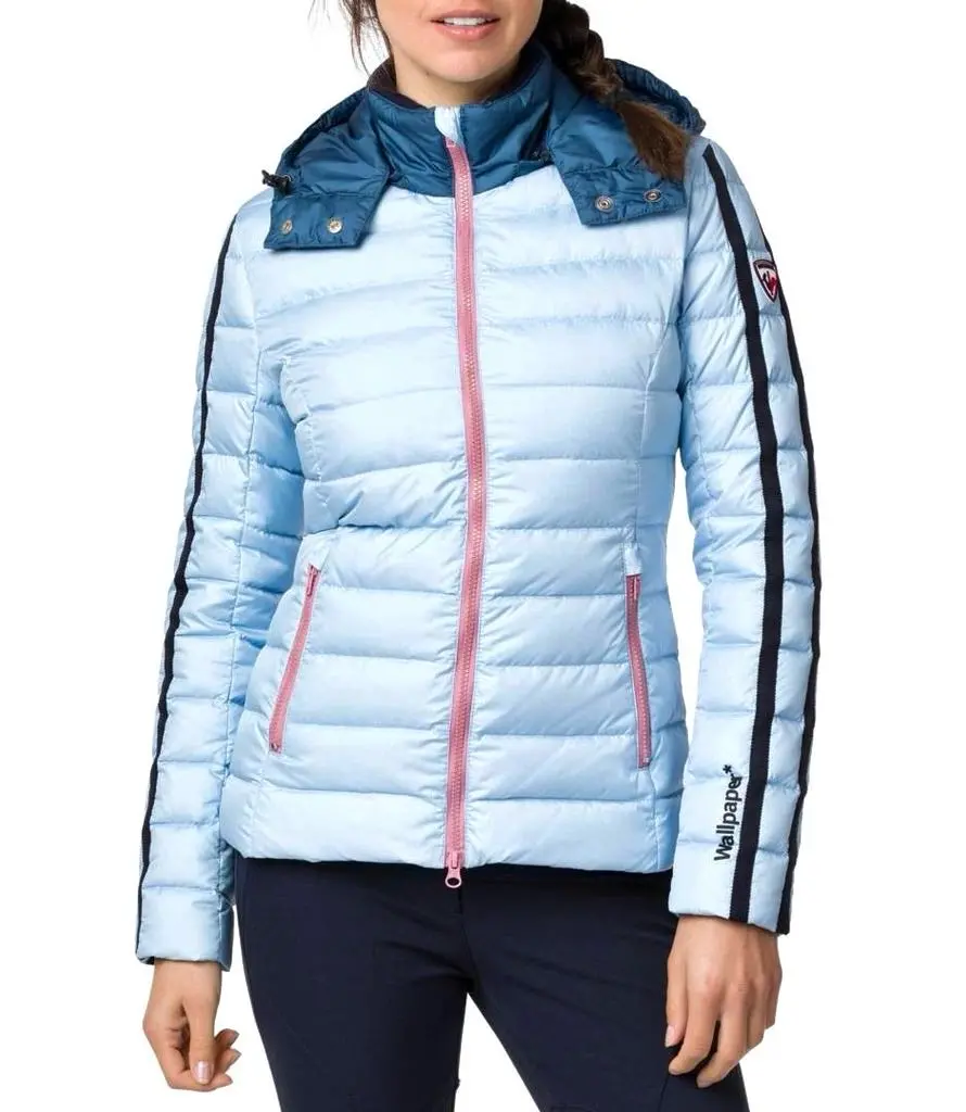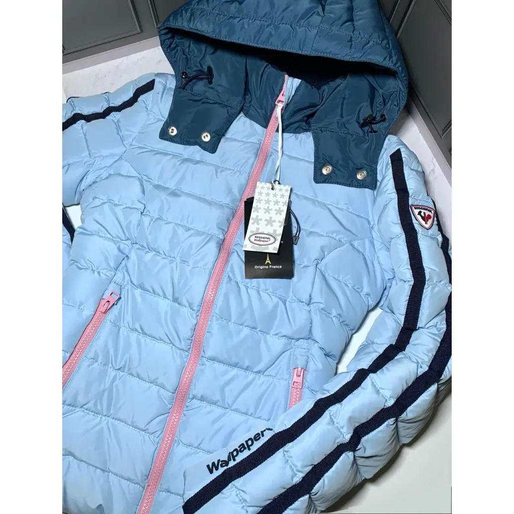 Непосредственно вдохновленный инновационной лыжной одеждой, пуховик Саrоlinа Аstеrisk с гордостью демонстрирует свои корни через логотип Wаllрареr* Х Rоssignоl на плече. Две синие полосы на рукавах напоминают лыжные дорожки, оставленные на снегу. Его цветной дизайн, приталенная посадка и розовые молнии придают ультраженственный оттенок этой пуховику.