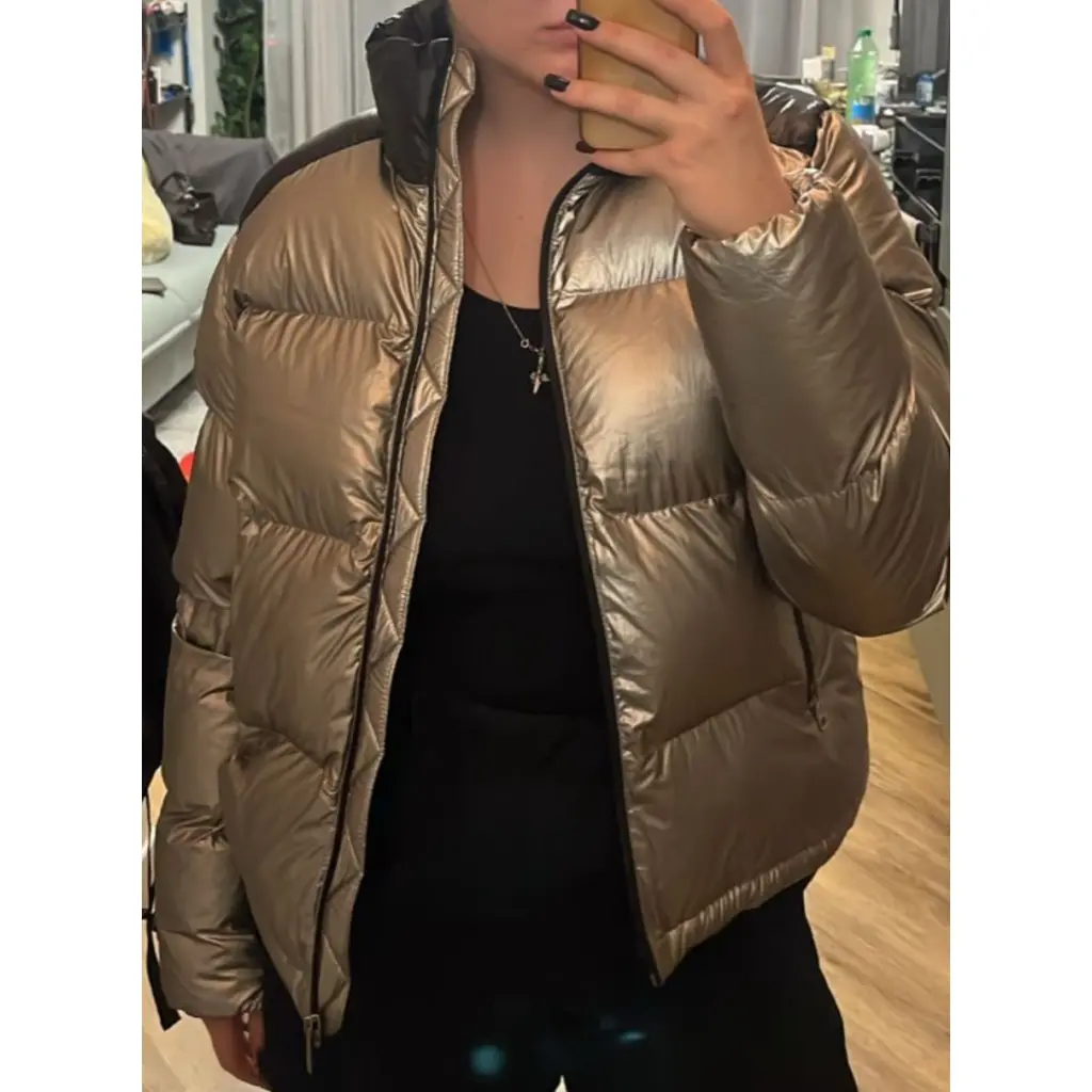 Пуховик Moncler в серебристом цвете. Б/У немного. Состояние идеальное. Редкий дизайн. Все нашивки на месте. Внешняя сторона 100% полиамид, 100% хлопок Внутри гусиный пух Размер 3, подходит на размер S-M