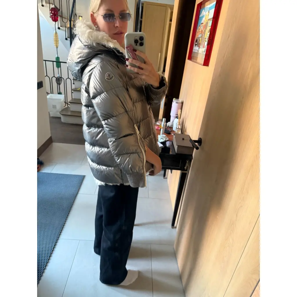 MONCLER Серебрянный меховой пуховик