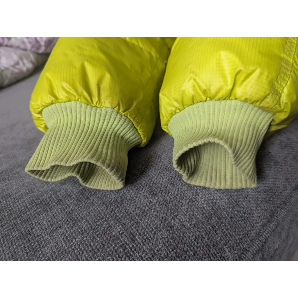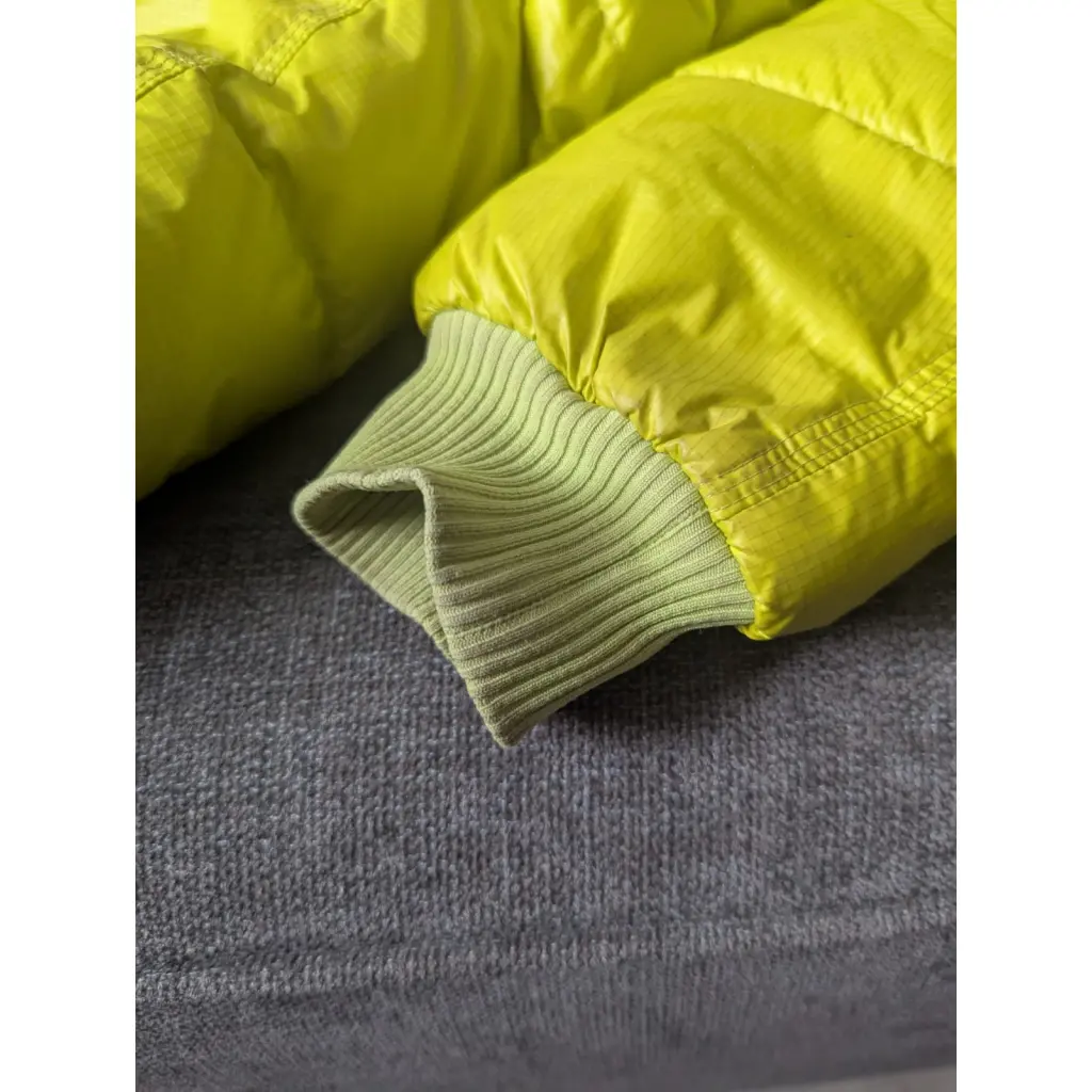Крутой пуховик. Легкий и невесомый. Наполнитель -гусиный пух.Двухсторонний. Покупала на официальном сайте. Снизу на ободке есть зацепки. Требуется химчистка.