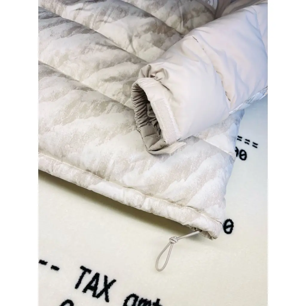 С набивкой пуха 550 F.P., качественной теплоизоляцией, имеет легкий вес.