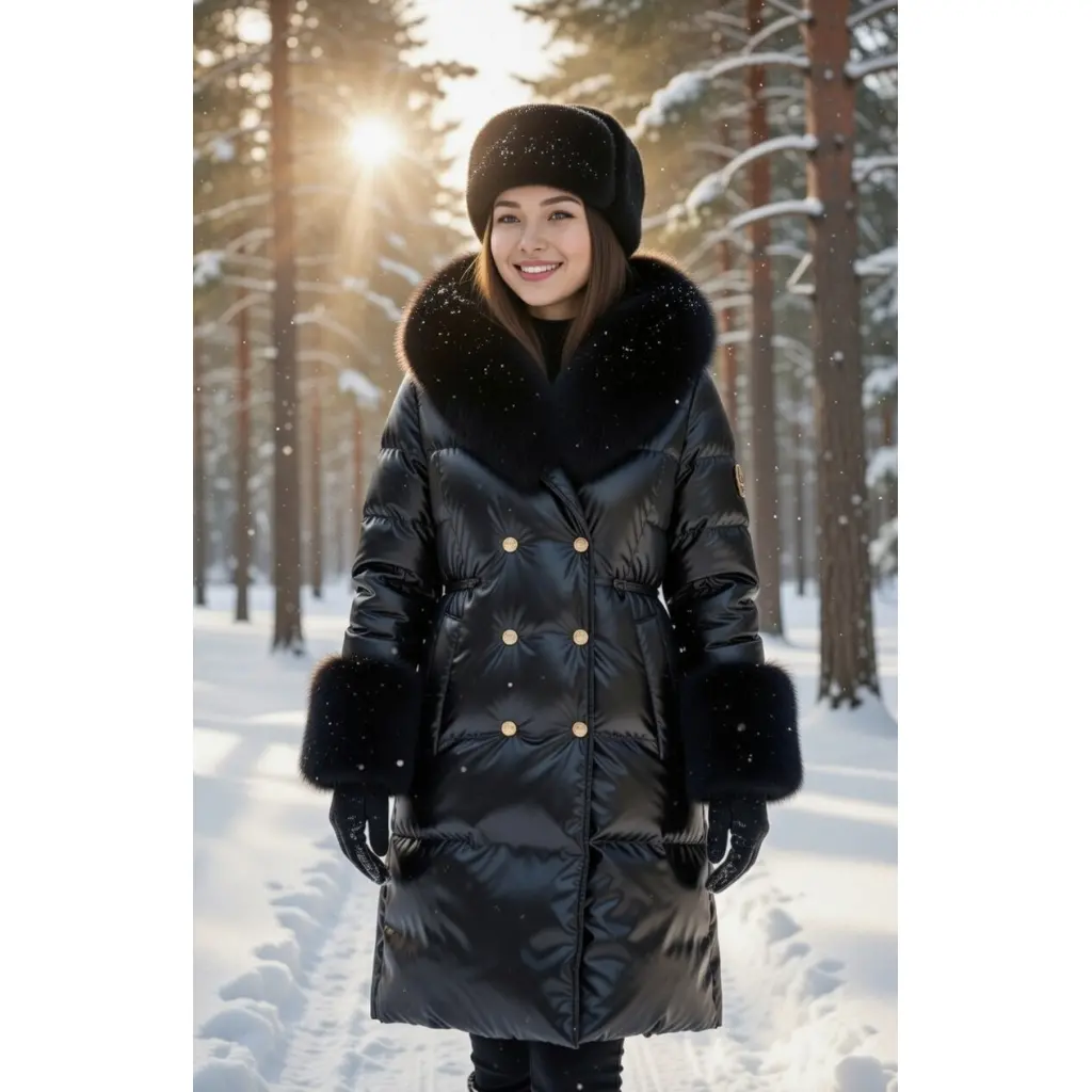Черный полиэстеровый пуховик