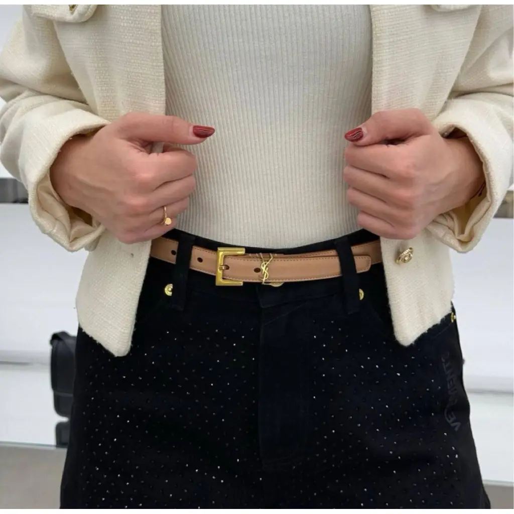 SAINT LAURENT Бежевый кожаный ремень