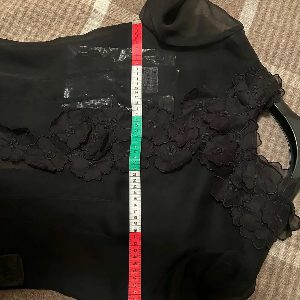 Чёрная прозрачная блузка Yves Saint Laurent из шелка (коллекция 2006). Декорирована очень красивой цветочной аппликацией. Новая, ни разу не надевалась (сохранена этикетка).