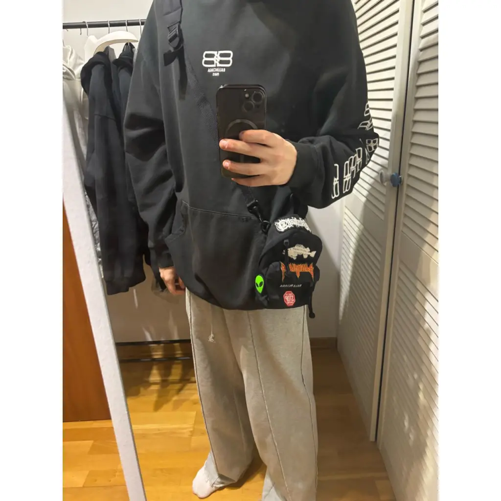 Редкая для РФ сумка-рюкзак, множество патчей по всему изделию, внутри 2 кармана, влезет паспорт, ключи, кошелёк. Ремешок регулируется (множество вариаций носки сумки).