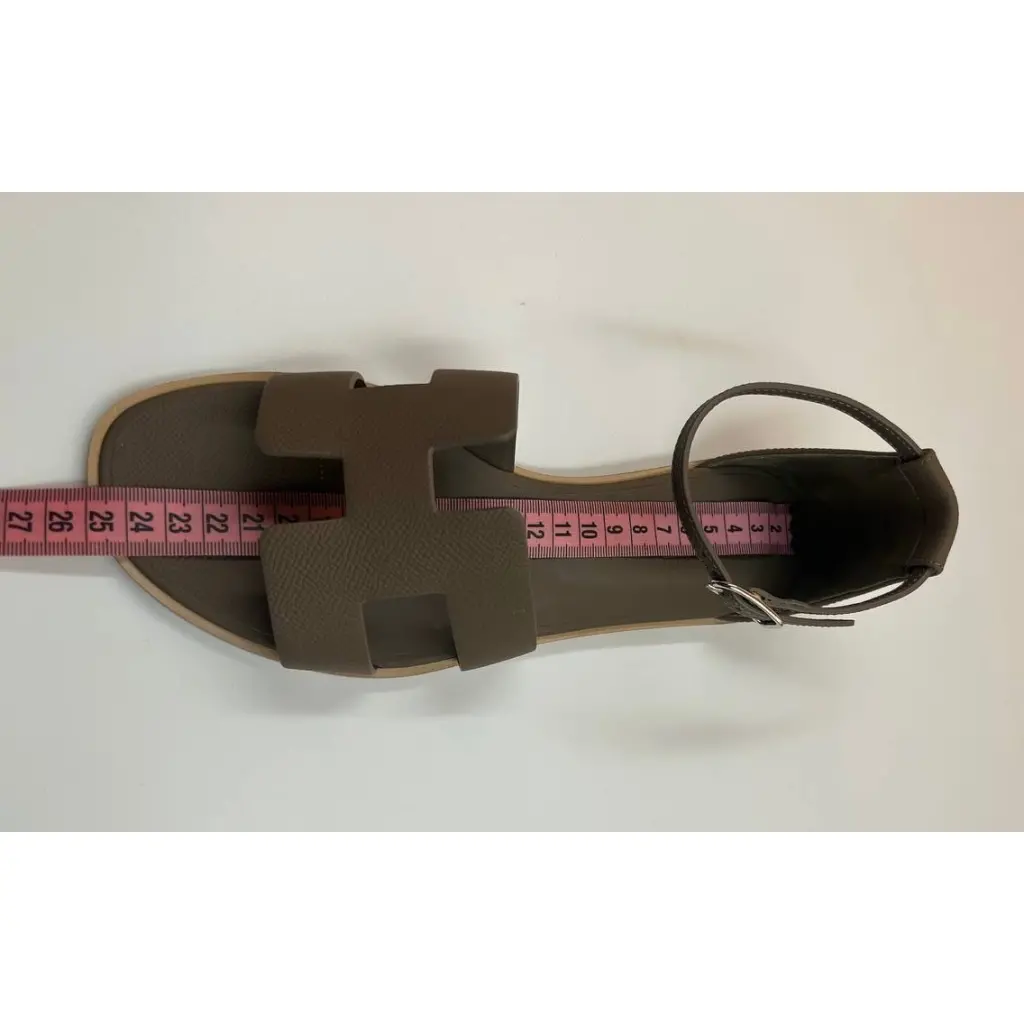 Сандалии Santorini из телячьей кожи Epsom с культовым вырезом «H» и регулируемым ремешком на щиколотке. Для шикарного образа, идеально подходит для лета. Сделано в Италии. Цвет: etoup/хаки. Размер: 39.