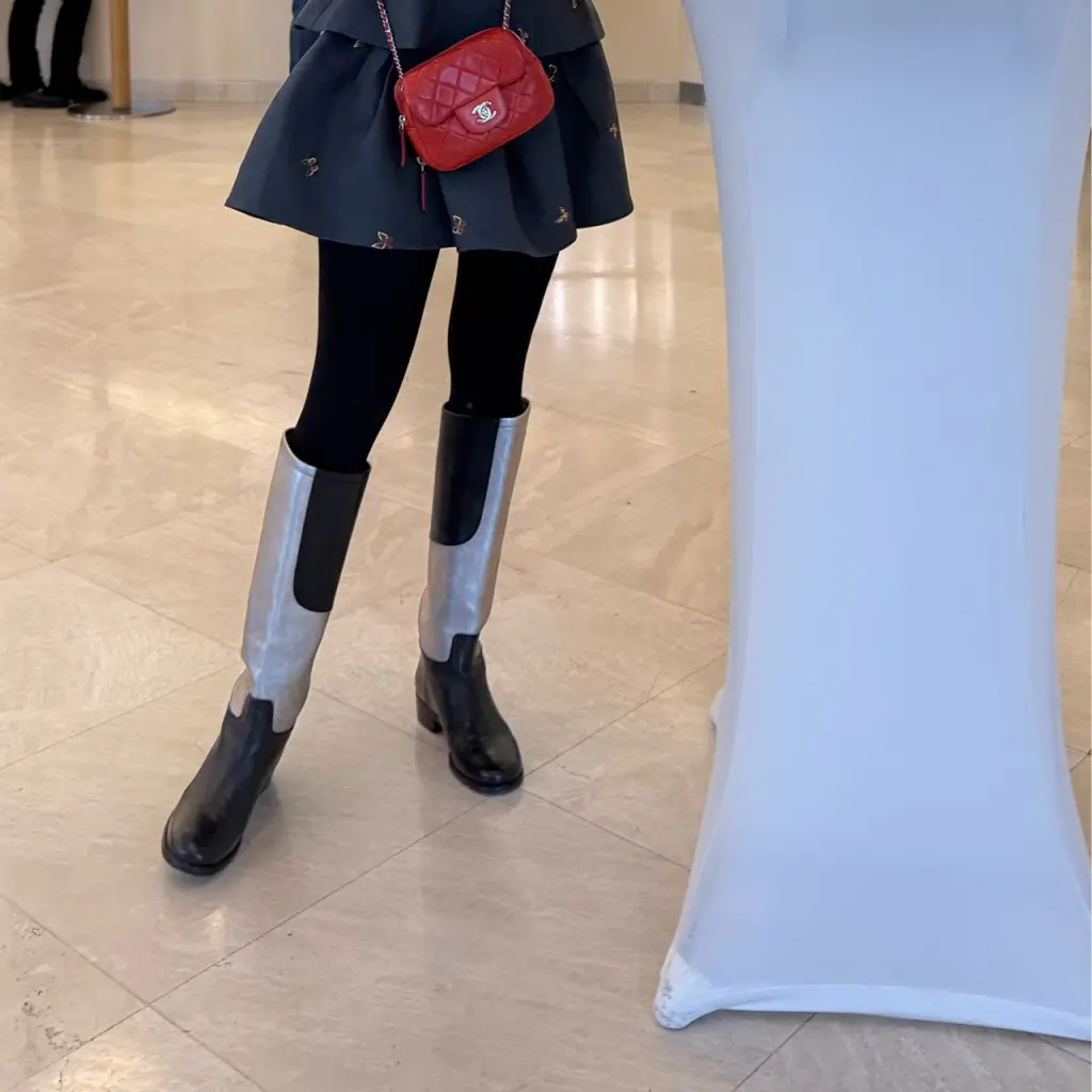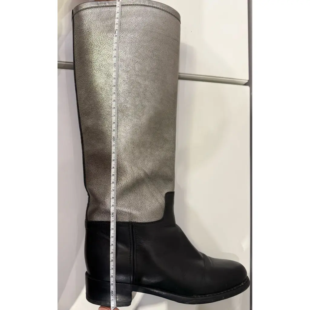 CHANEL Антрацитовые кожаные сапоги