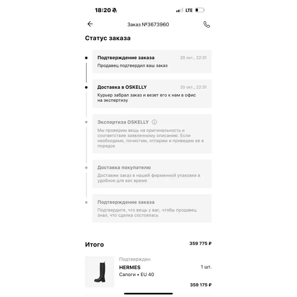 Каждый заказ проходит проверку подлинности в офисе Oskelly