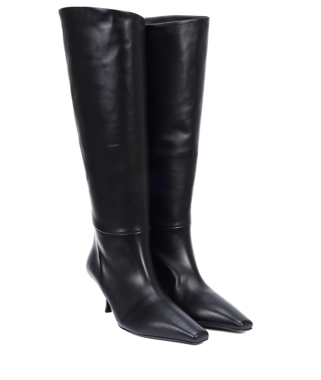 -Черные сапоги из мягкой мелкозернистой кожи от NEOUS. -Модель с вытянутым мысом, полуприлегающим голенищем, низким каблуком, внутренней отделкой и подошвой из натуральной кожи.