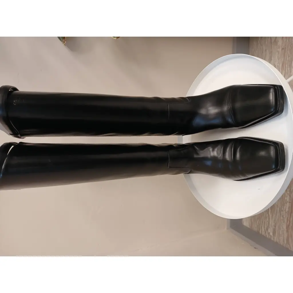 Бренд: Totême Цвет: Черный Размер: 38 Материал: Кожа 100% Высота каблука: 2,5 см Высота сапог: 46 см Состояние: Присутствуют следы носки Комплект: Сапоги, пыльник, коробка без крышки