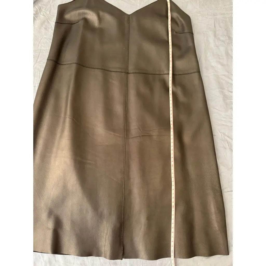 Сарафан выше колена, примерно на 10 см. Спереди кожа (очень тоненькая), сзади ткань плотная. Одет 1 раз. Состояние новой вещи.