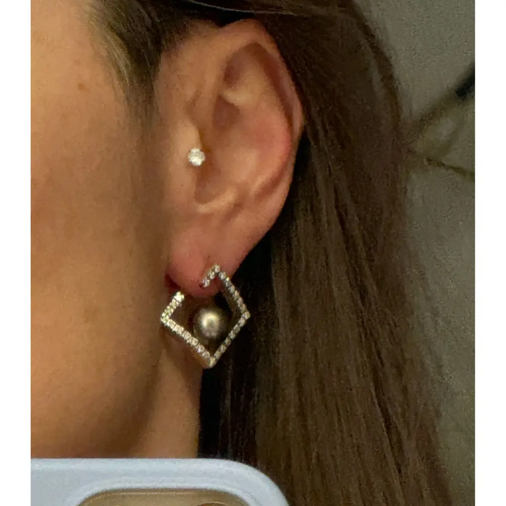 Сережки, DAMIANI, бриллианты, черная натуральная жемчужина Таити 9,5 мм 13 грамм золота, 1 карат суммарно бриллиантов
