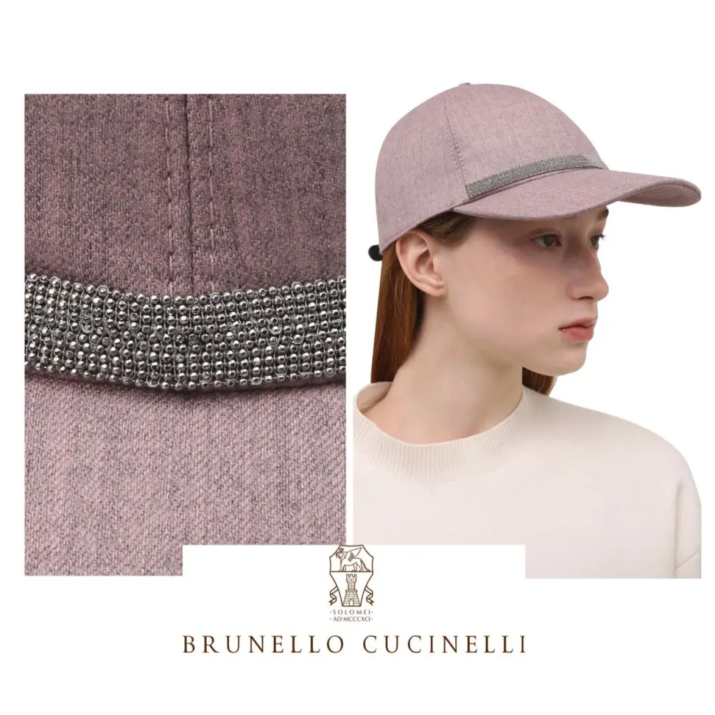 Светло-розовая бейсболка. Легкий аксессуар с жестким козырьком украшен сверкающими цепочками мониль, знаковыми для марки. Сзади - узкий кожаный ремешок с пряжкой, регулирующий посадку головного убора