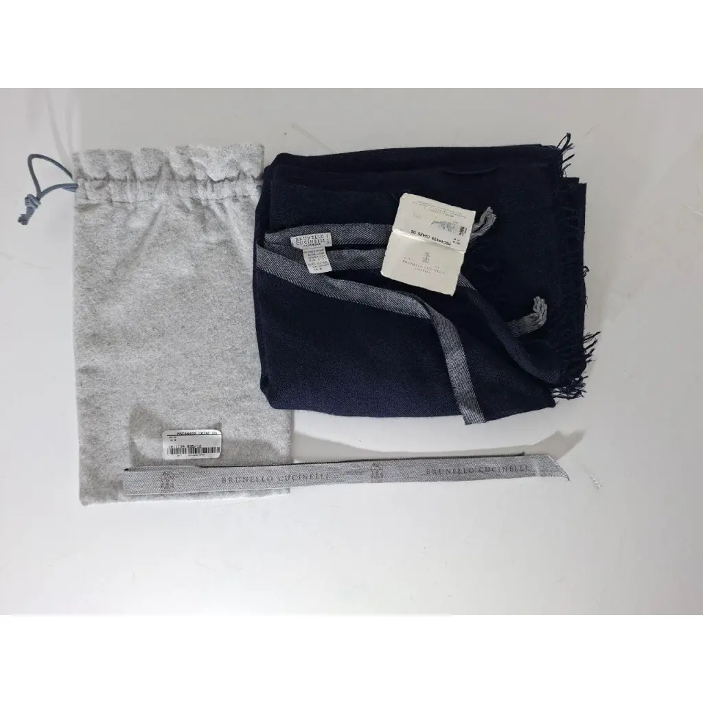 BRUNELLO CUCINELLI Темно-синий кашемировый шарф