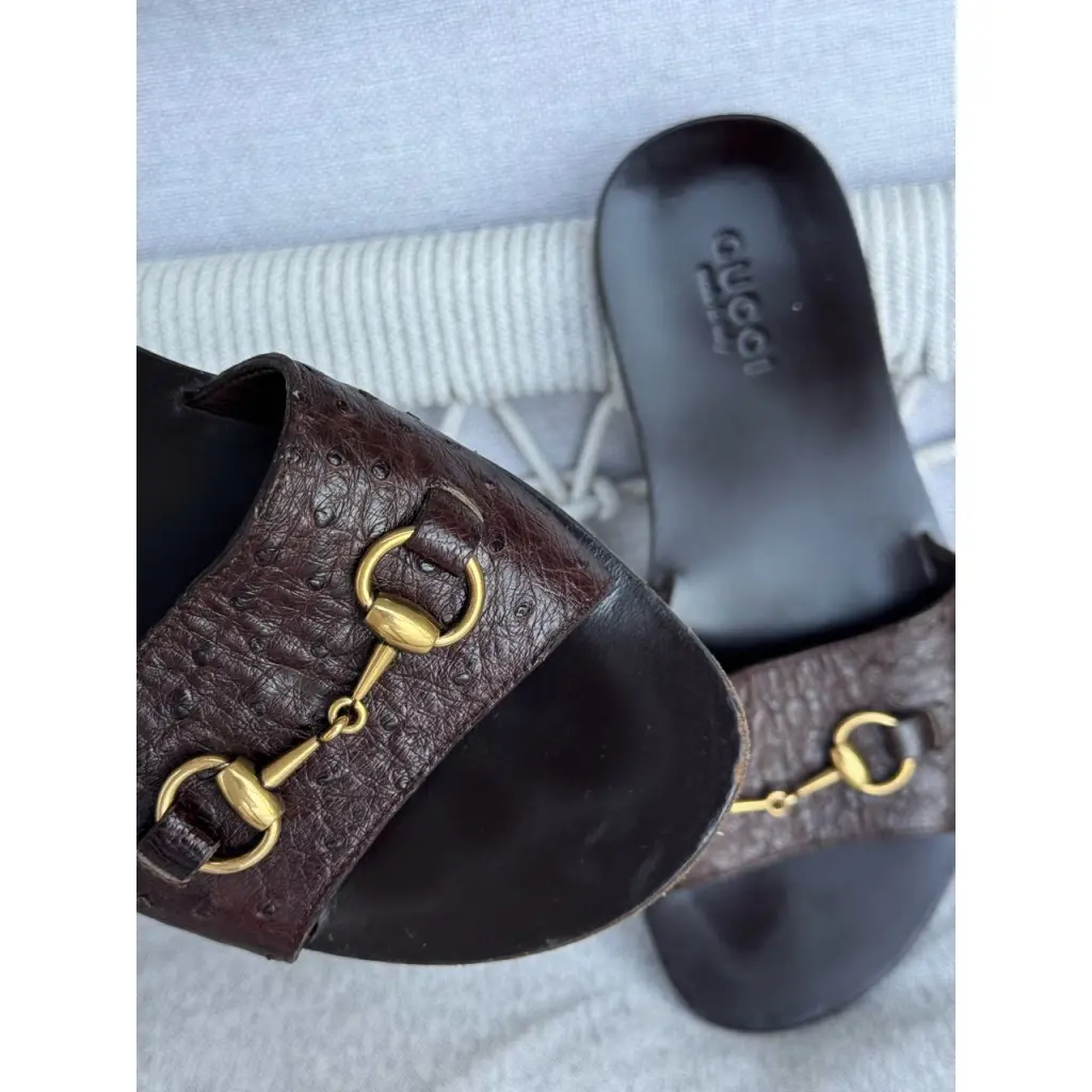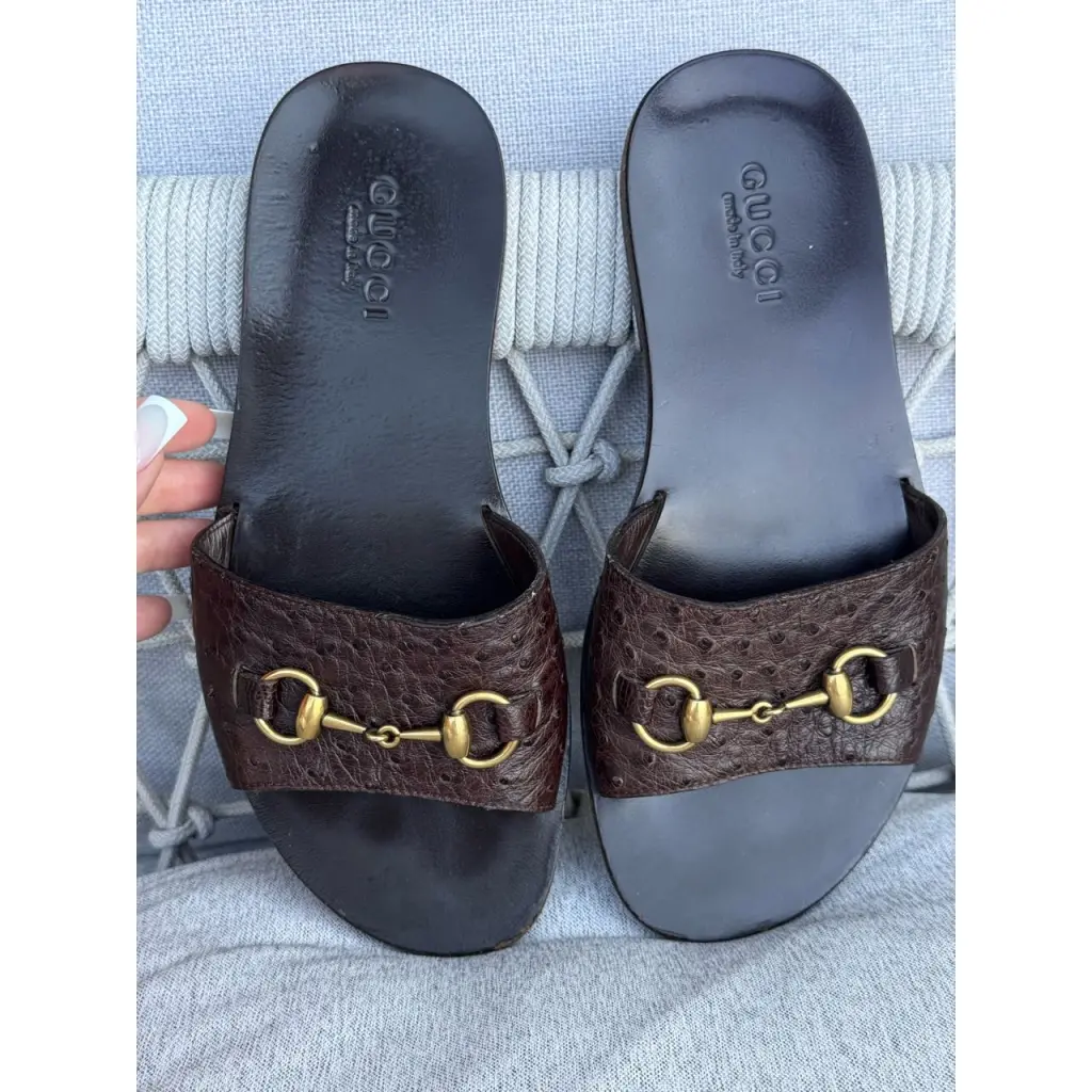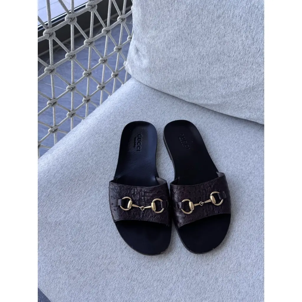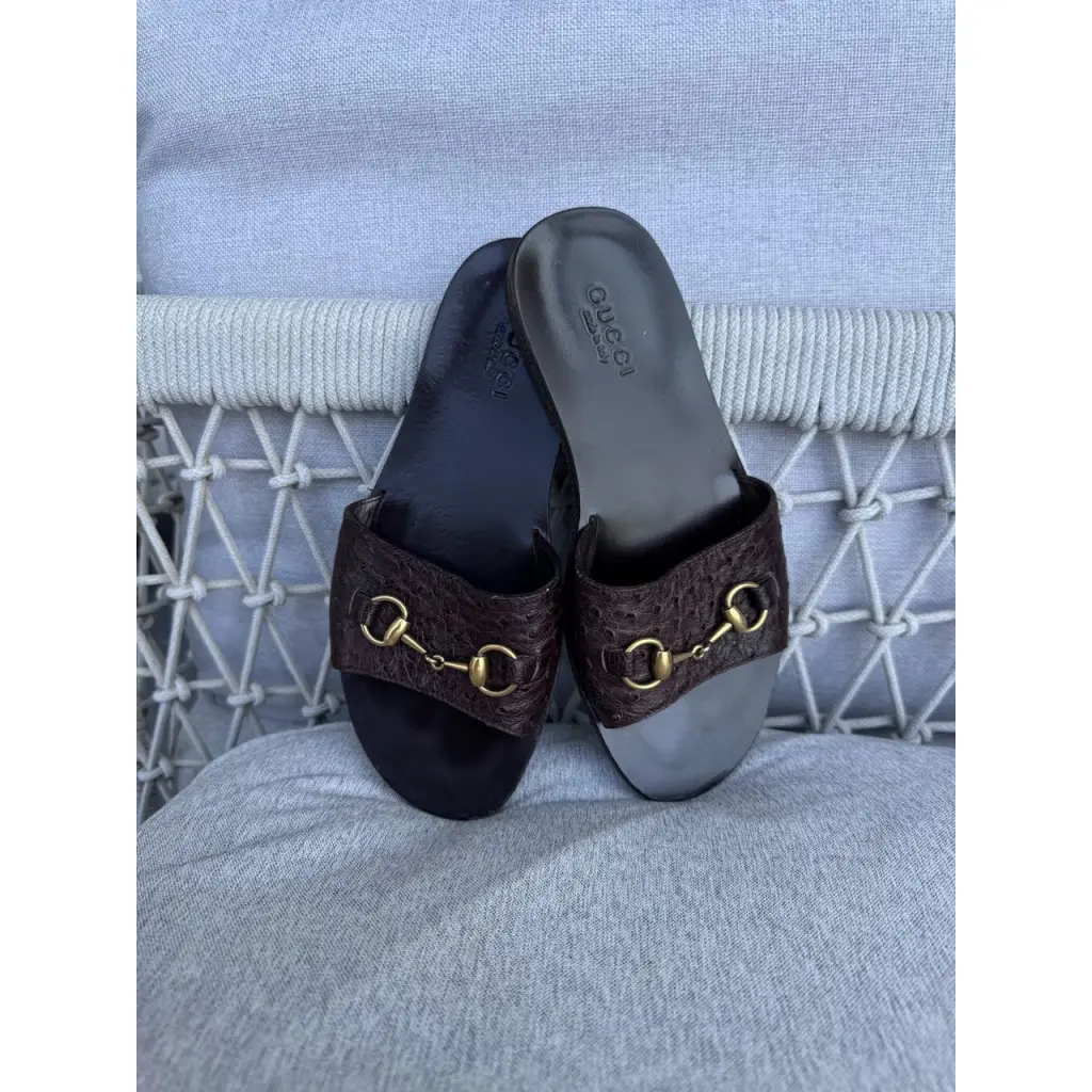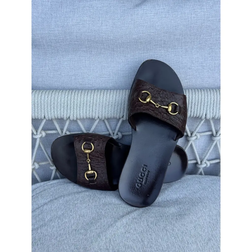 Шлепанцы из кожи страуса от GUCCI в цвете горький шоколад 🍫