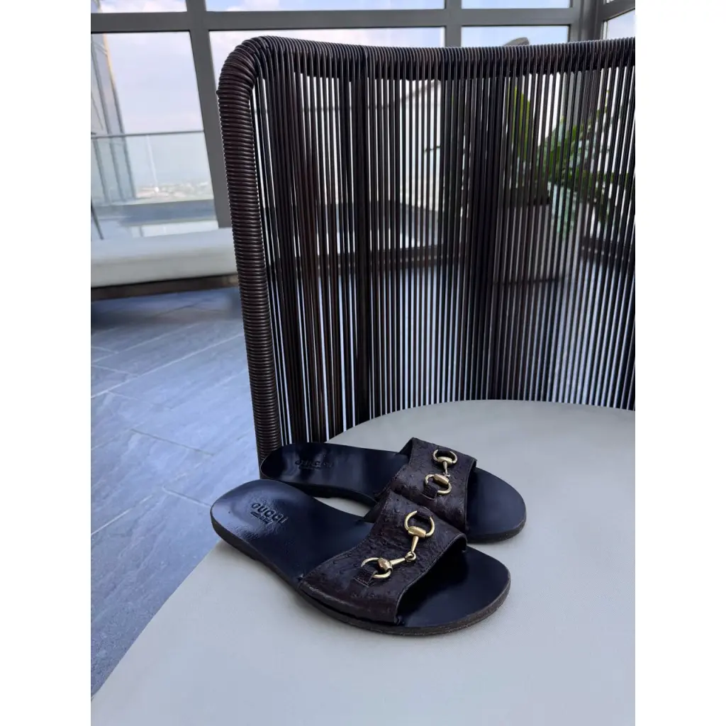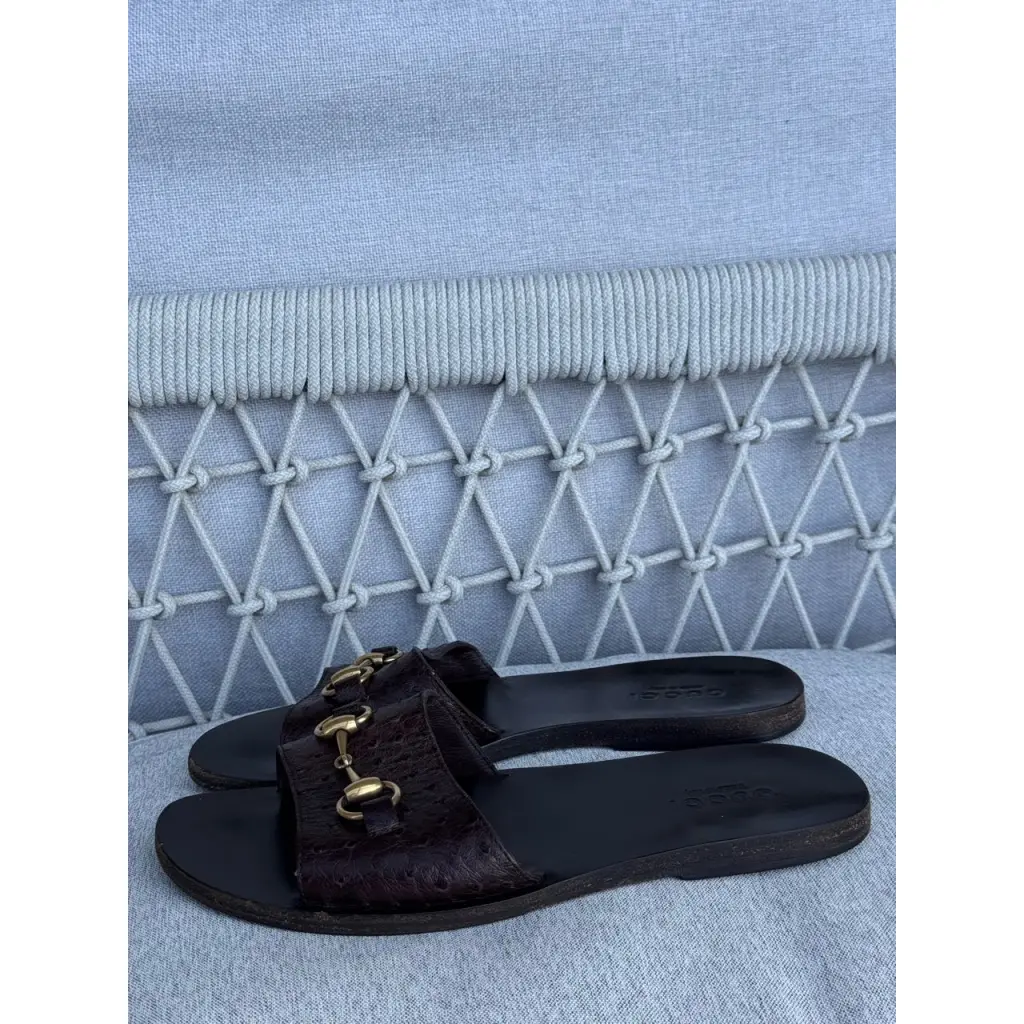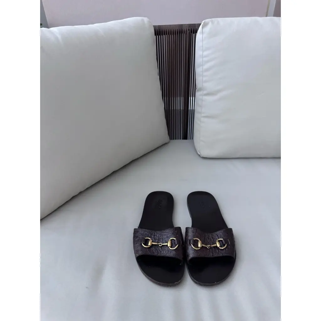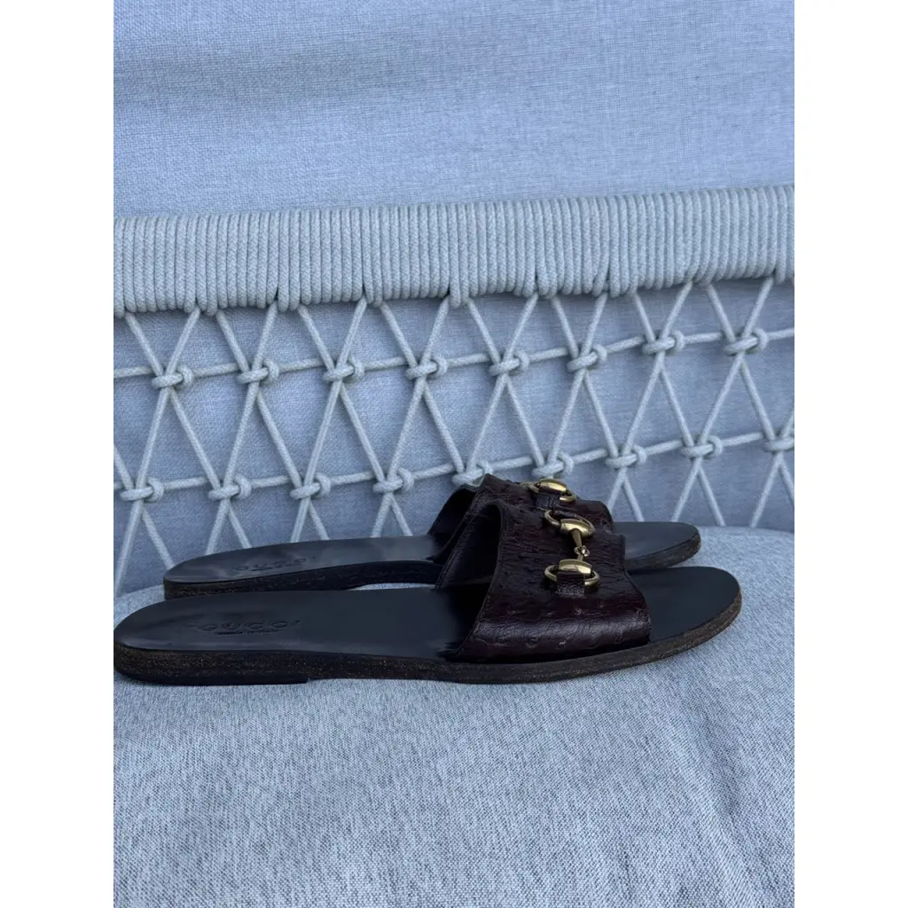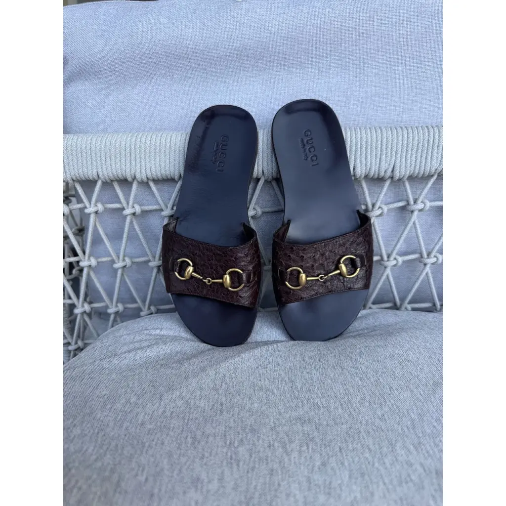 Шлепанцы из кожи страуса от GUCCI в цвете горький шоколад 🍫