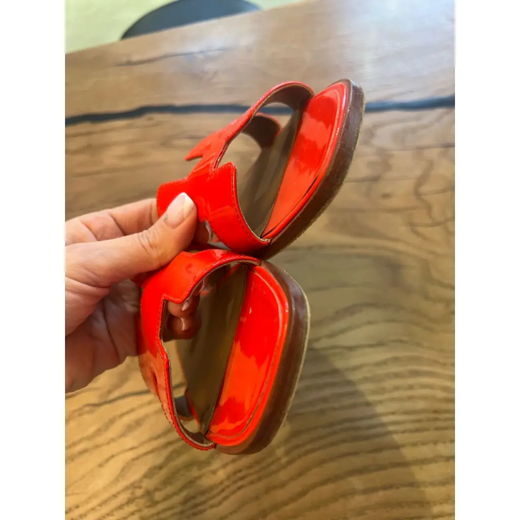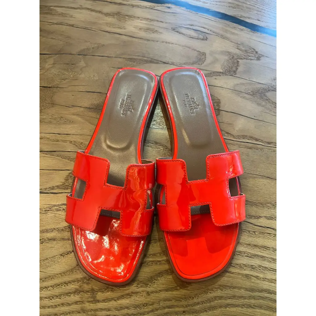 HERMES Красные шлепанцы из лакированной кожи