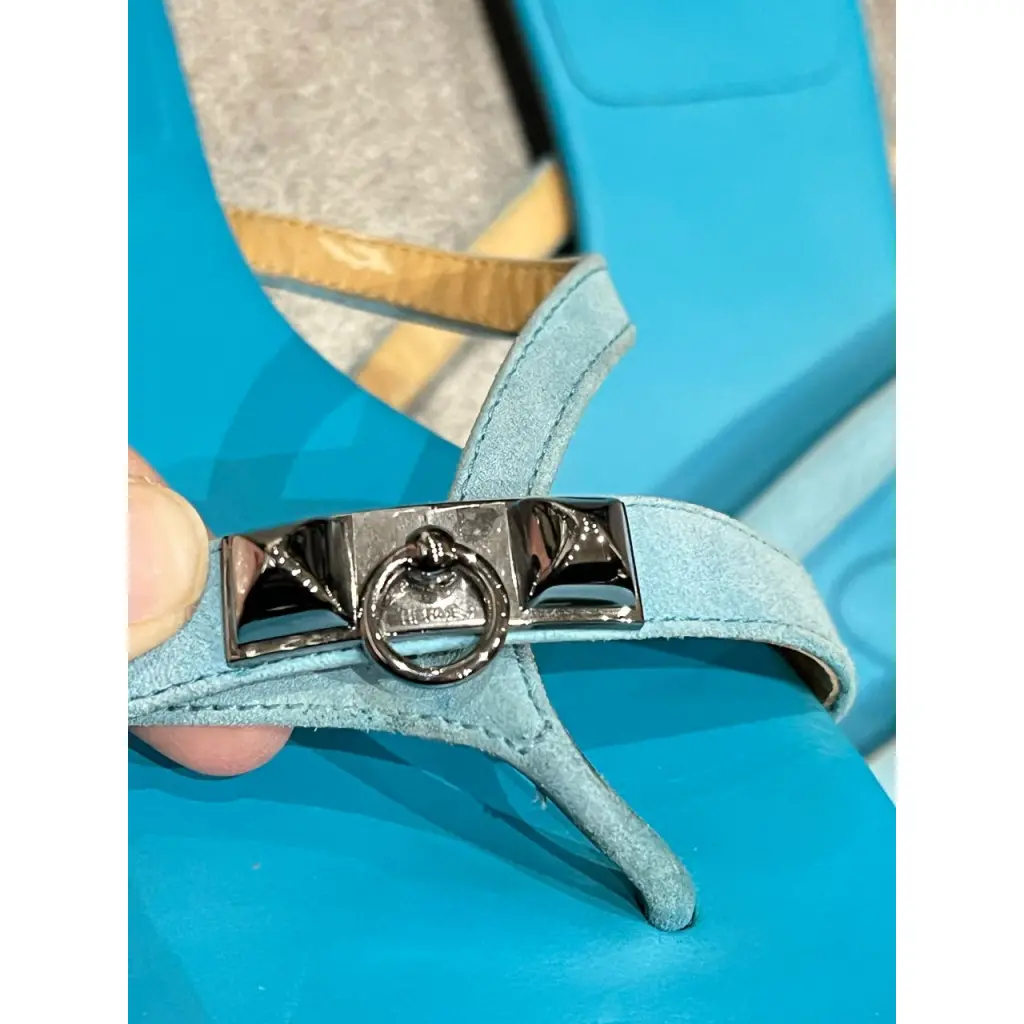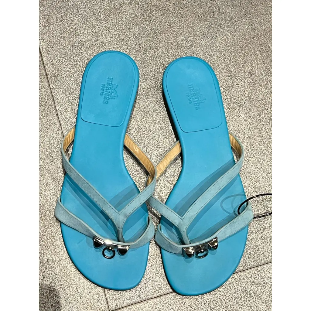 HERMES Голубые замшевые шлепанцы