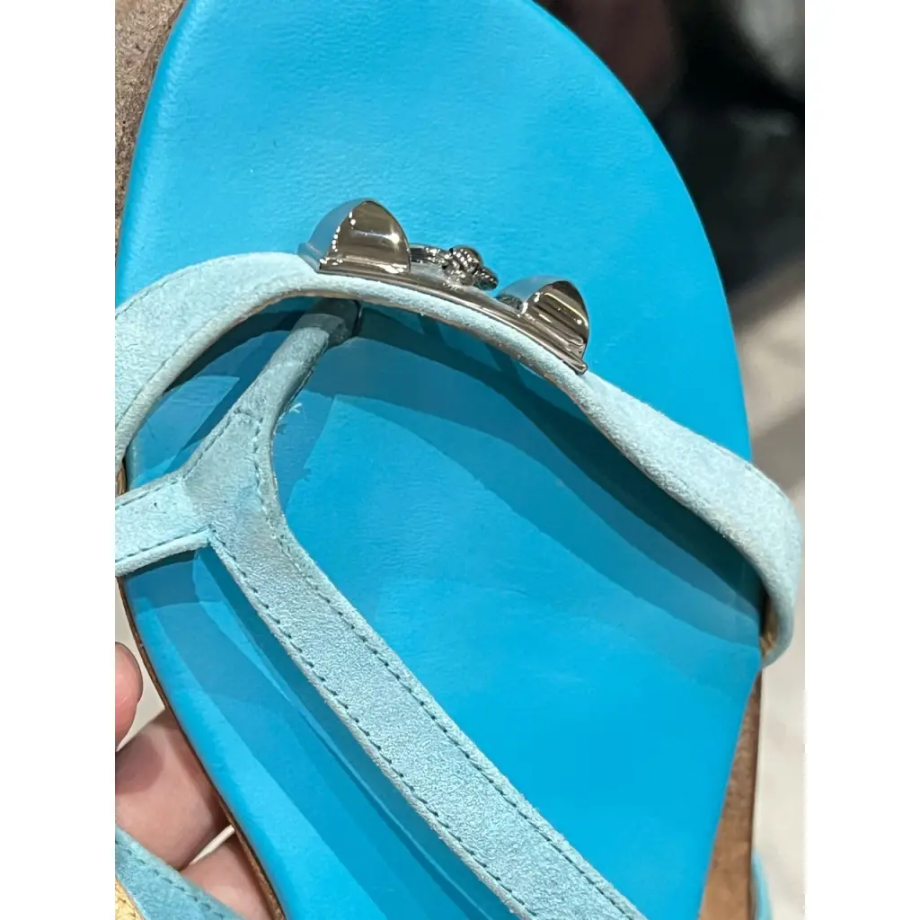 Шлепанцы HERMES EU 38 голубой замша