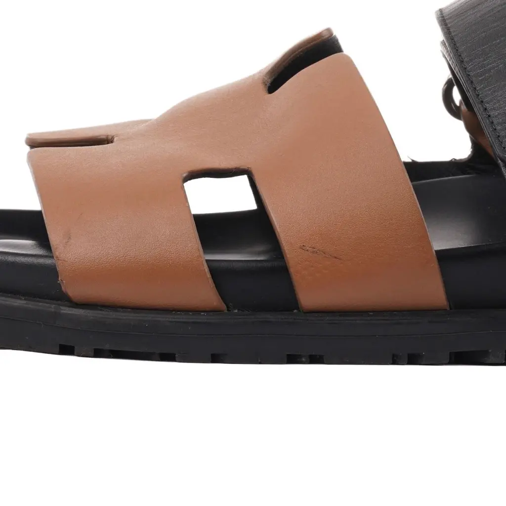Сандали / шлепанцы / сланцы Hermes Chypre Sandal в оттенке Naturel / Noir из натуральной кожи теленка