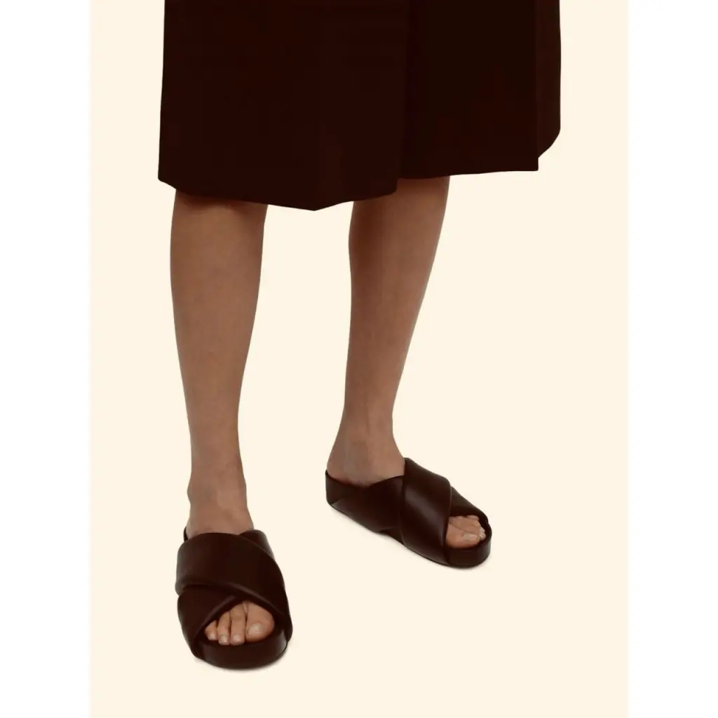 Коричневые кожаные шлепанцы