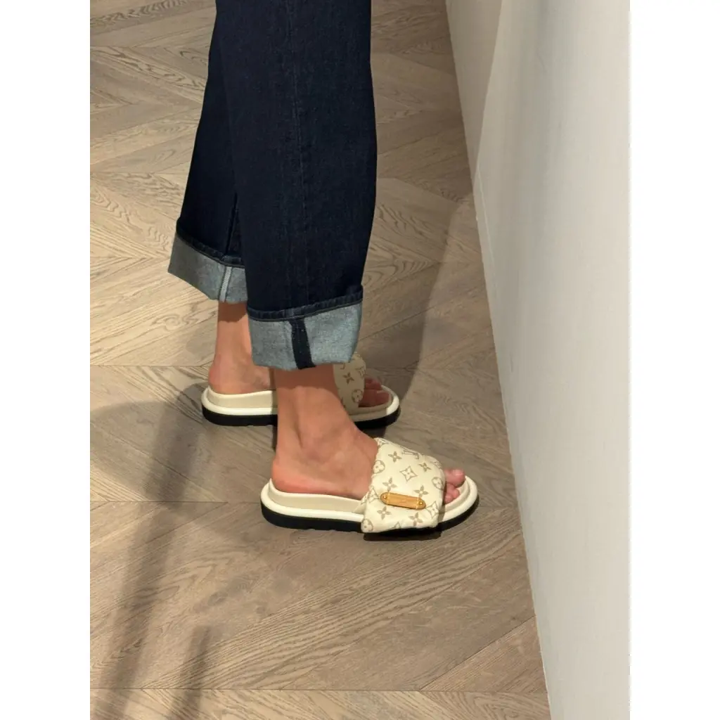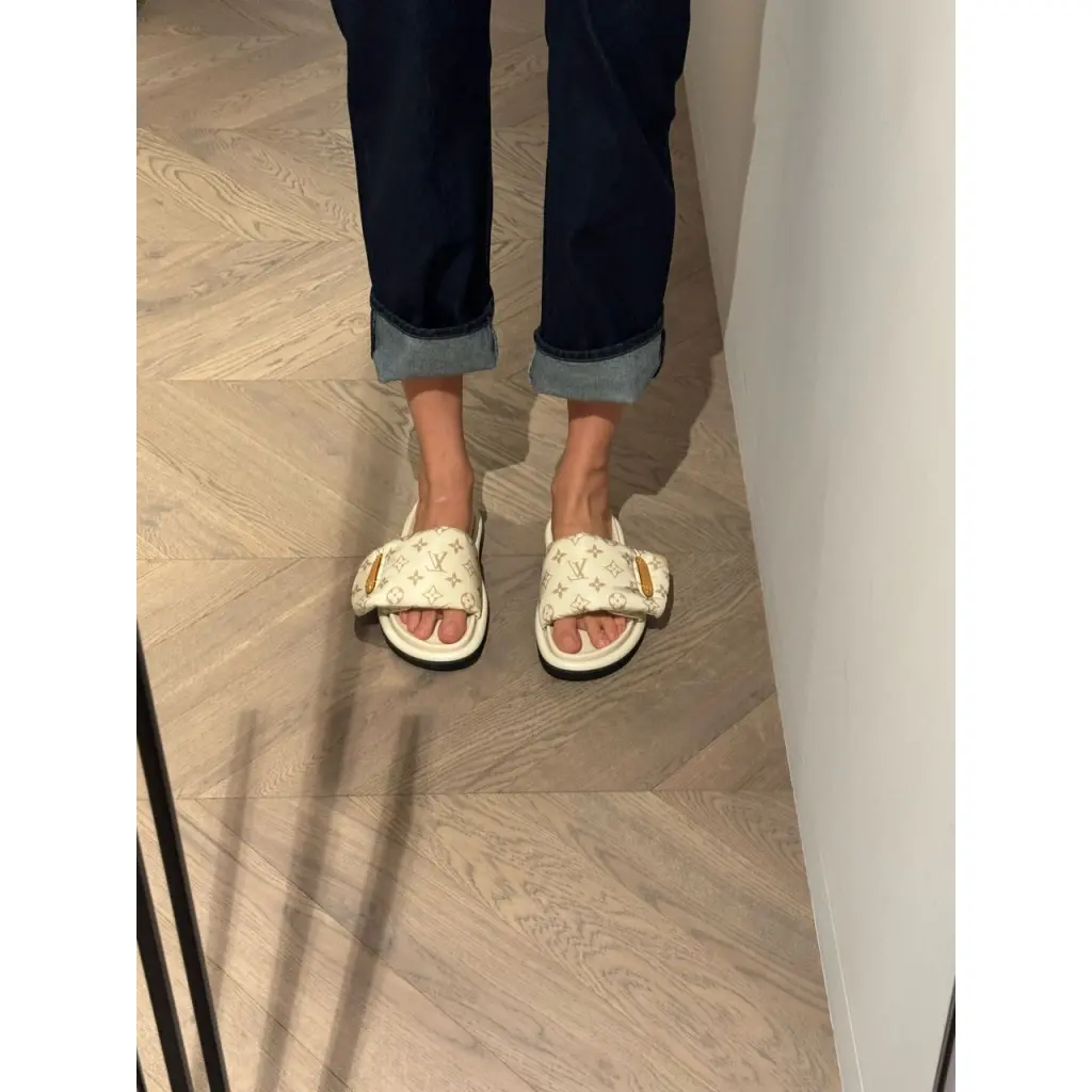 LOUIS VUITTON Бежевые текстильные шлепанцы