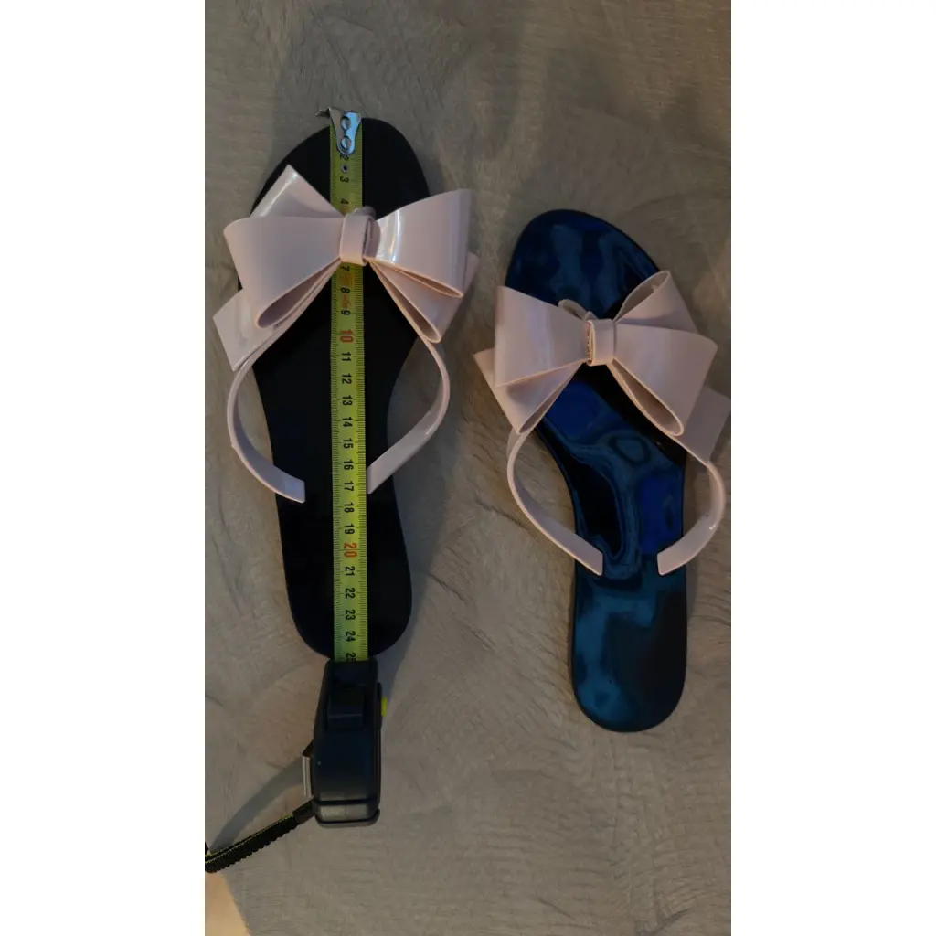 Шлепки от бразильского бренда Melissa. Прекрасное сочетание черного цвета подошвы и бежево-розоватого бантика. Удобные и очень мягкие. Ароматизированная резина. Красивый стильный комфорт. Очень выигрышно смотрятся и на пляже и на летней вечеринке с платьем. Одевались единожды, малы.