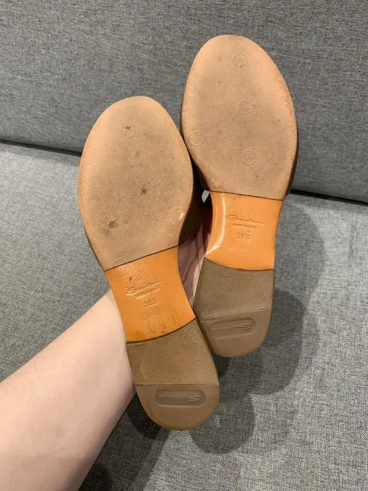 Шлёпанцы от бренда Santoni. В отличном состоянии. Состав: кожа. Размер 38,5. Длина по стельке: 24,5 см. В комплекте только обувь. Без коробки и пыльника. Изначальная цена: 50 000 р.