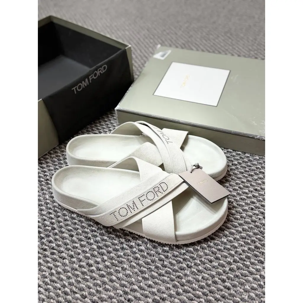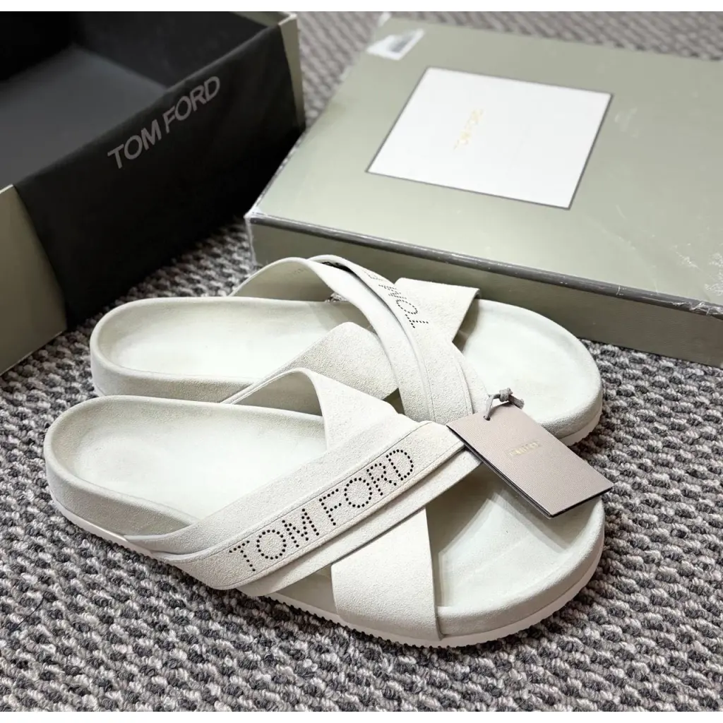 Представляем вашему вниманию эксклюзивные шлепанцы от всемирно известного бренда класса люкс TOM FORD. Эта оригинальная пара сочетает в себе безупречное качество, стиль и комфорт, характерные для итальянского модного дома.