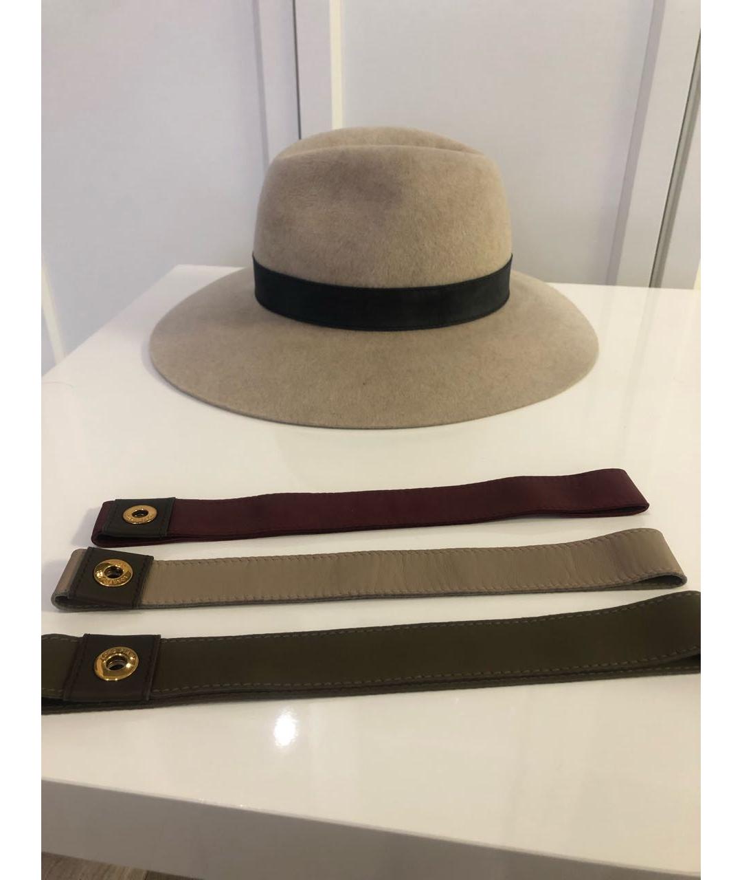 Шляпа Loro Piano бежевого цвета. Уникальность товара состоит в том, что есть 4 сменные кожаные ленты на шляпе: синяя, бордовая, бежевая и коричневая, что позволяет иметь 4 разных образа.