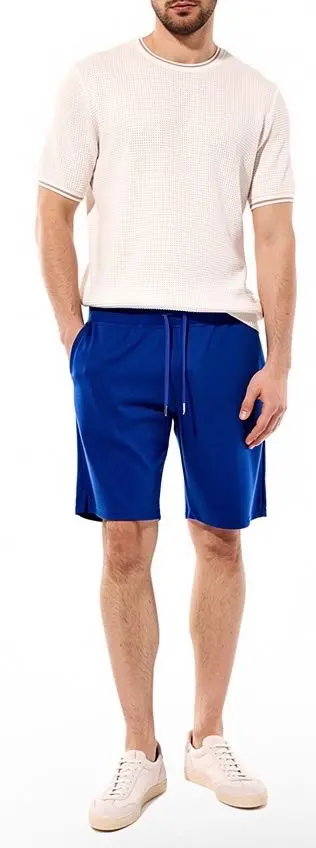 Яркий синий цвет, отсутствие декора и мягкий хлопковый трикотаж делают шорты из весенне-летней коллекции идеальными как для прогулок по морскому побережью, так и по городу.