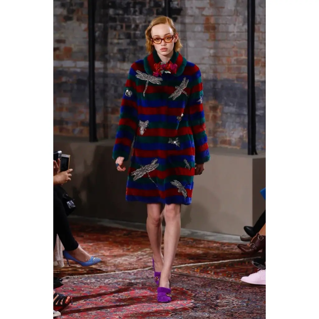 #guccibee #guccidragonfly #guccisynergy #maximalism #guccirunway #guccispringsummer #luxuryfur #embroidery #crystalembellished #guccibeesanddragonflies