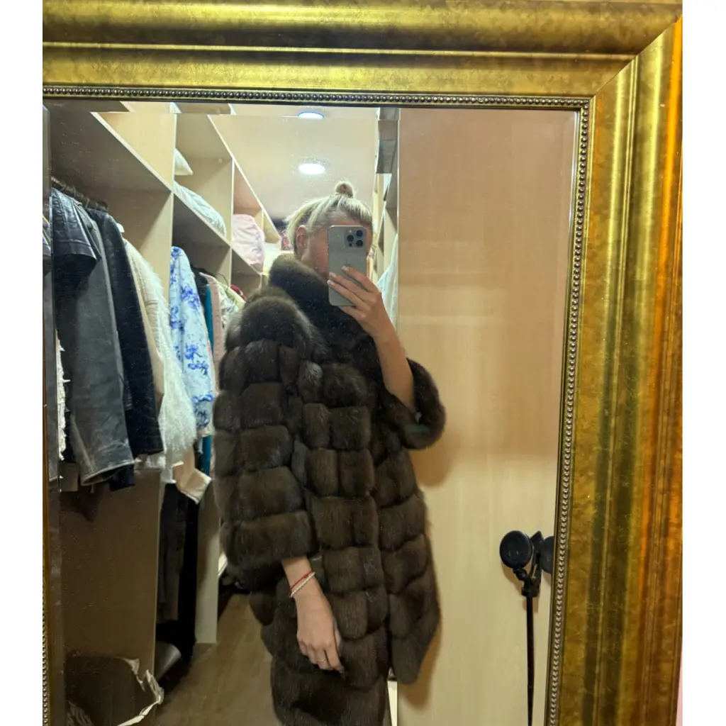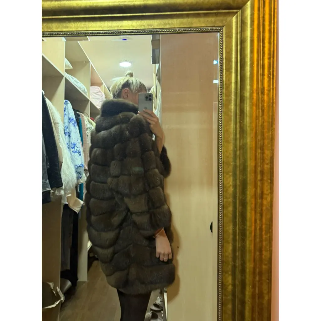 SIMONETTA RAVIZZA Коричневая меховая шуба