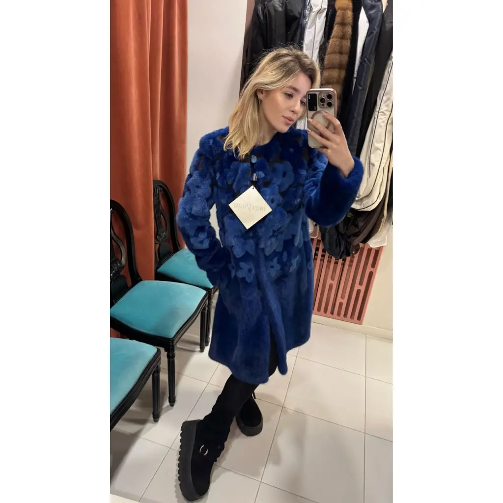 Синяя меховая шуба