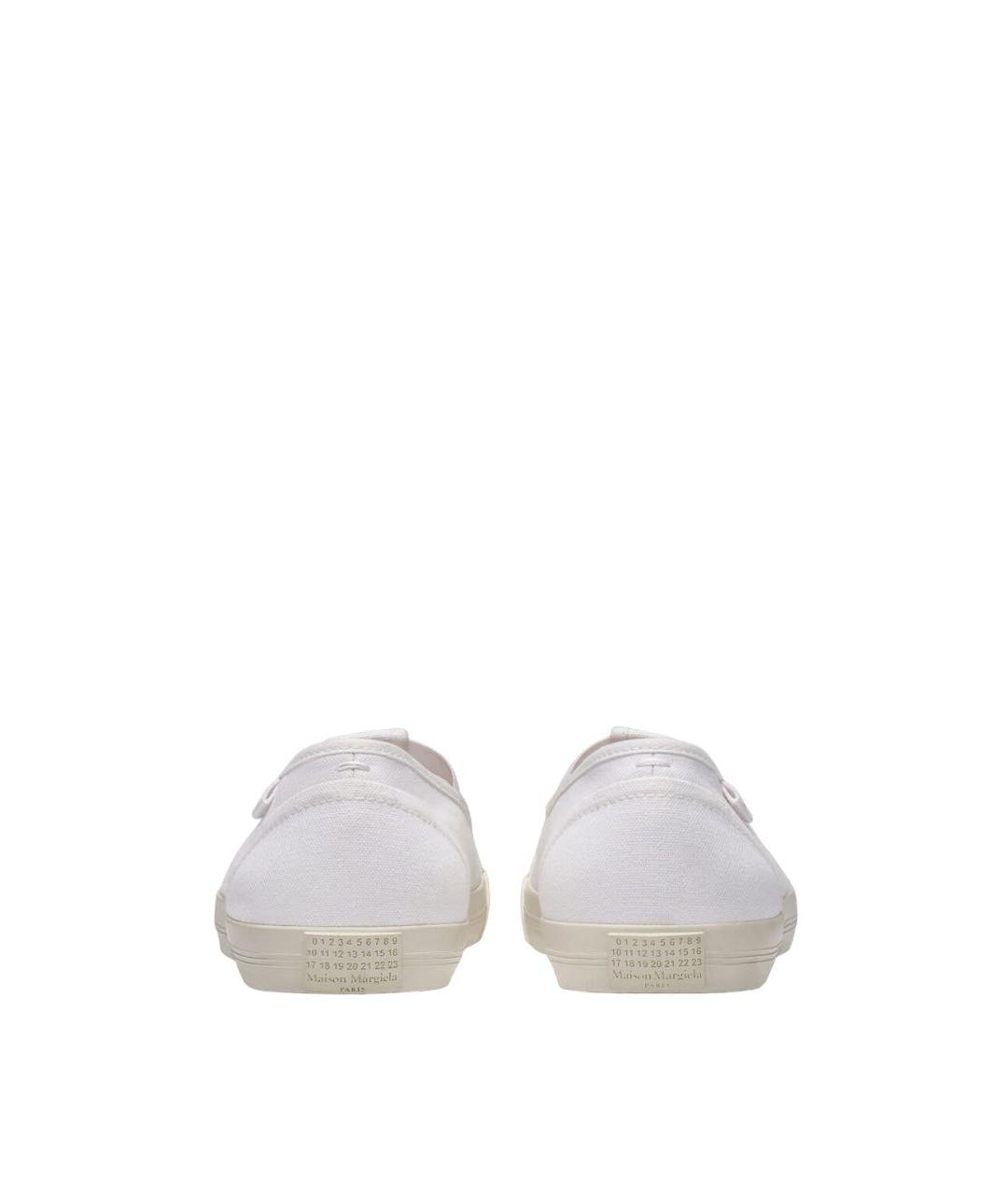 Знаковую для марки линейку Tabi, вдохновленную одноименными японскими носками, пополнили молочно-белыми слипонами с характерным раздвоенным мысом. Его подчеркнули рифленой накладкой из эластичной резины. Для создания модели Mary Jane использовали легкую хлопковую парусину, которая хорошо пропускает воздух. О принадлежности пары марке, основанной Мартином Маржелой, заявили вшивным патчем сбоку и числовым кодом на подошве сзади.