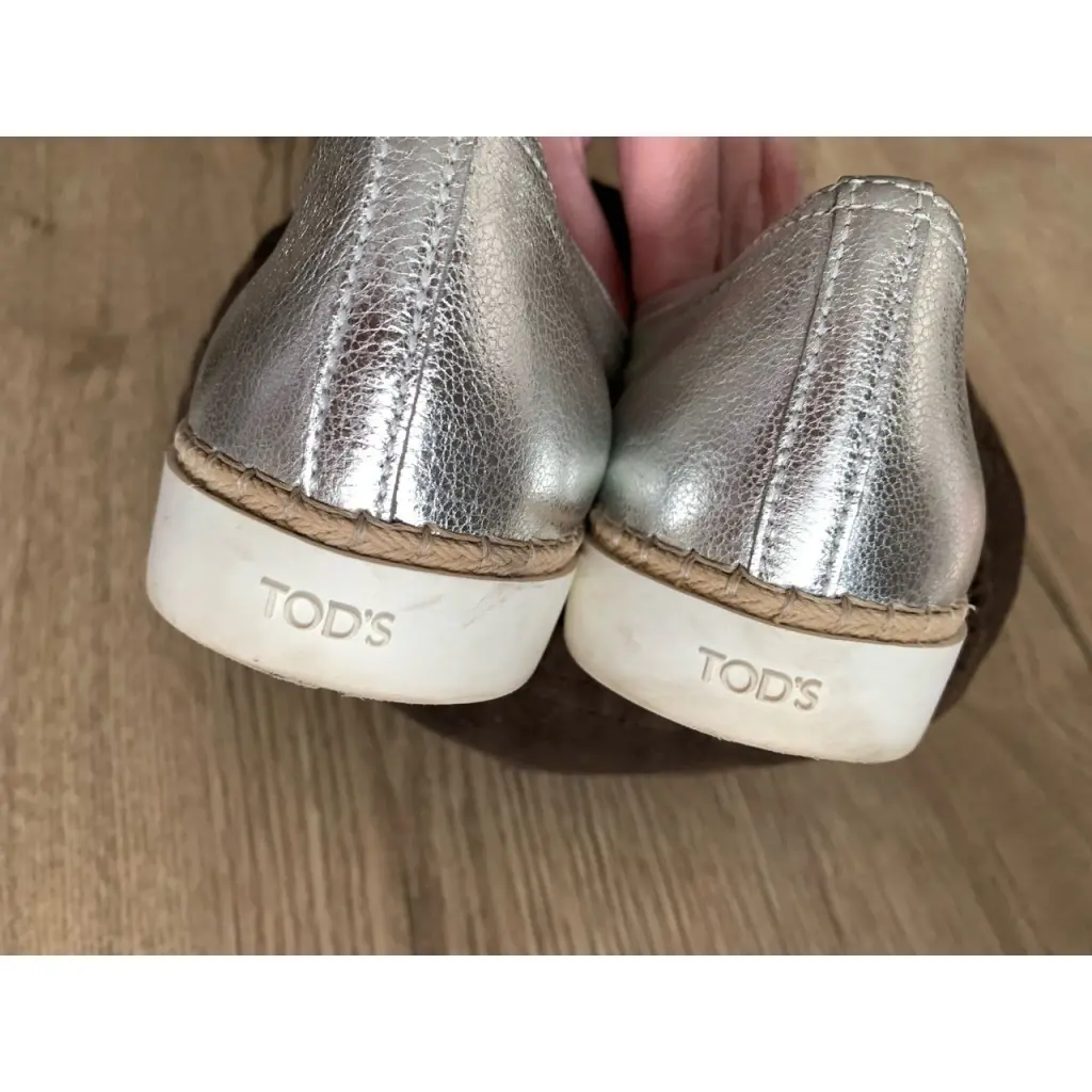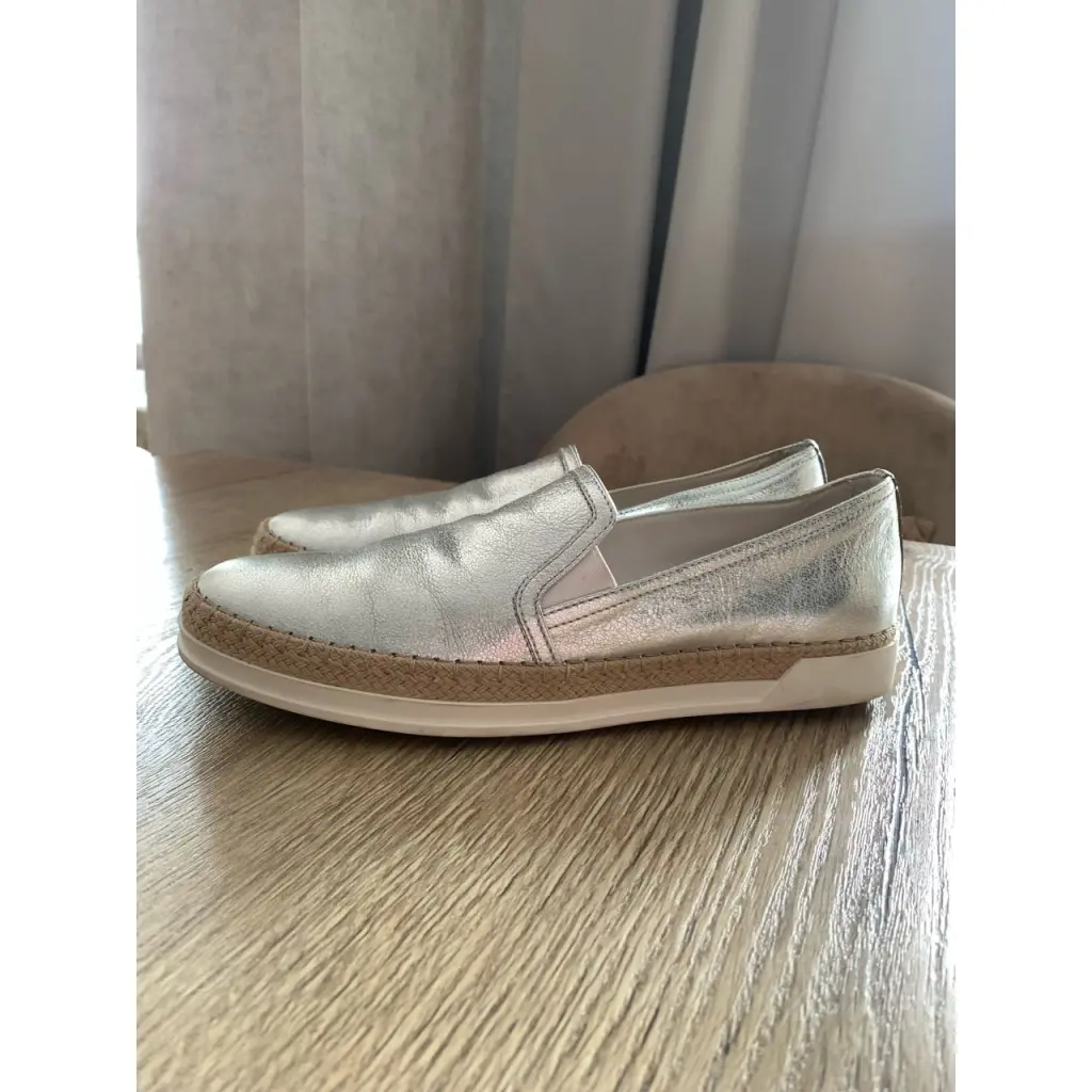 Слипоны из кожи серебряного цвета, 39 размера, в очень хорошем состоянии. Имеются следу носки на подошве и стельке. Пару еле заметных поверхностных царапинок на передней части (см.на фото), даже трудно было сфотографировать.