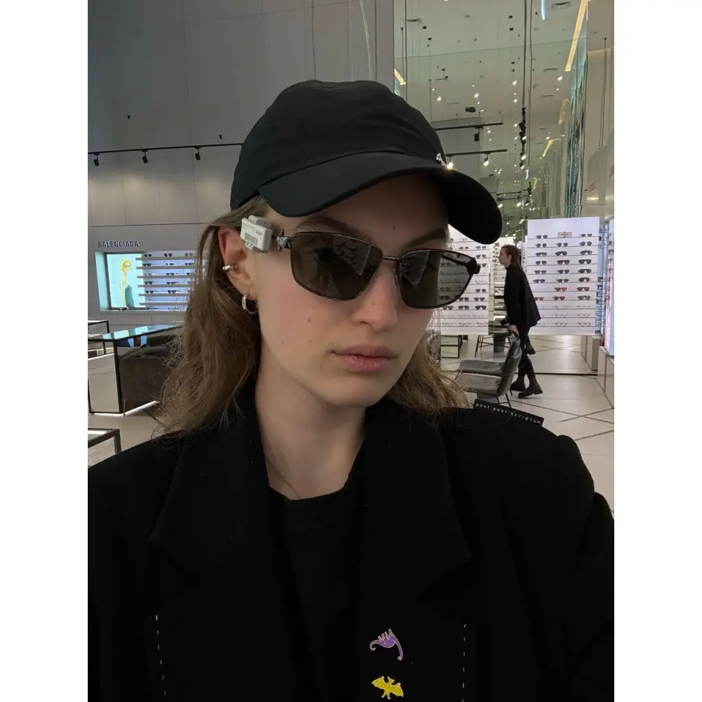 Для изготовления очков выбрали невесомый сплав, который не утяжеляет аксессуар, делая его комфортным для долгого использования. В силуэте креплений у тонких дужек зашифровали фирменный треугольник. Модель дополнили затемненными дымчатыми линзами, на 100% блокирующими вредные УФ-лучи.