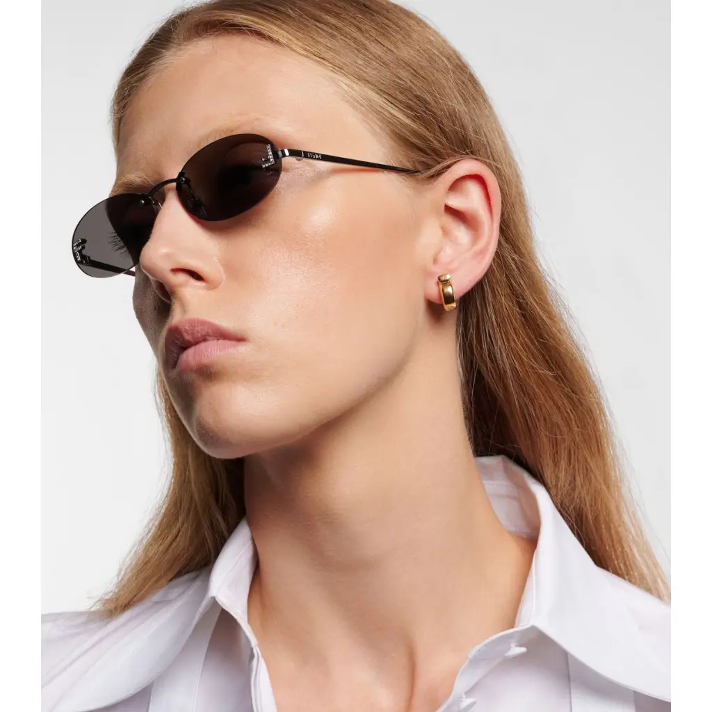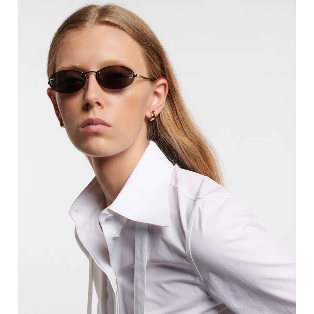 Безободковые солнцезащитные очки First Crystal изготовили из металла с серебристым финишем. Овальные линзы с максимальным уровнем защиты от УФ-лучей украсили литерами F с кристальным паве, а на тонких дужках выгравировали логотипы марки. Только примерялись, без этикеток, без коробки. В комплекте чехол и салфетка. Быстрая отправка, находятся в Москве