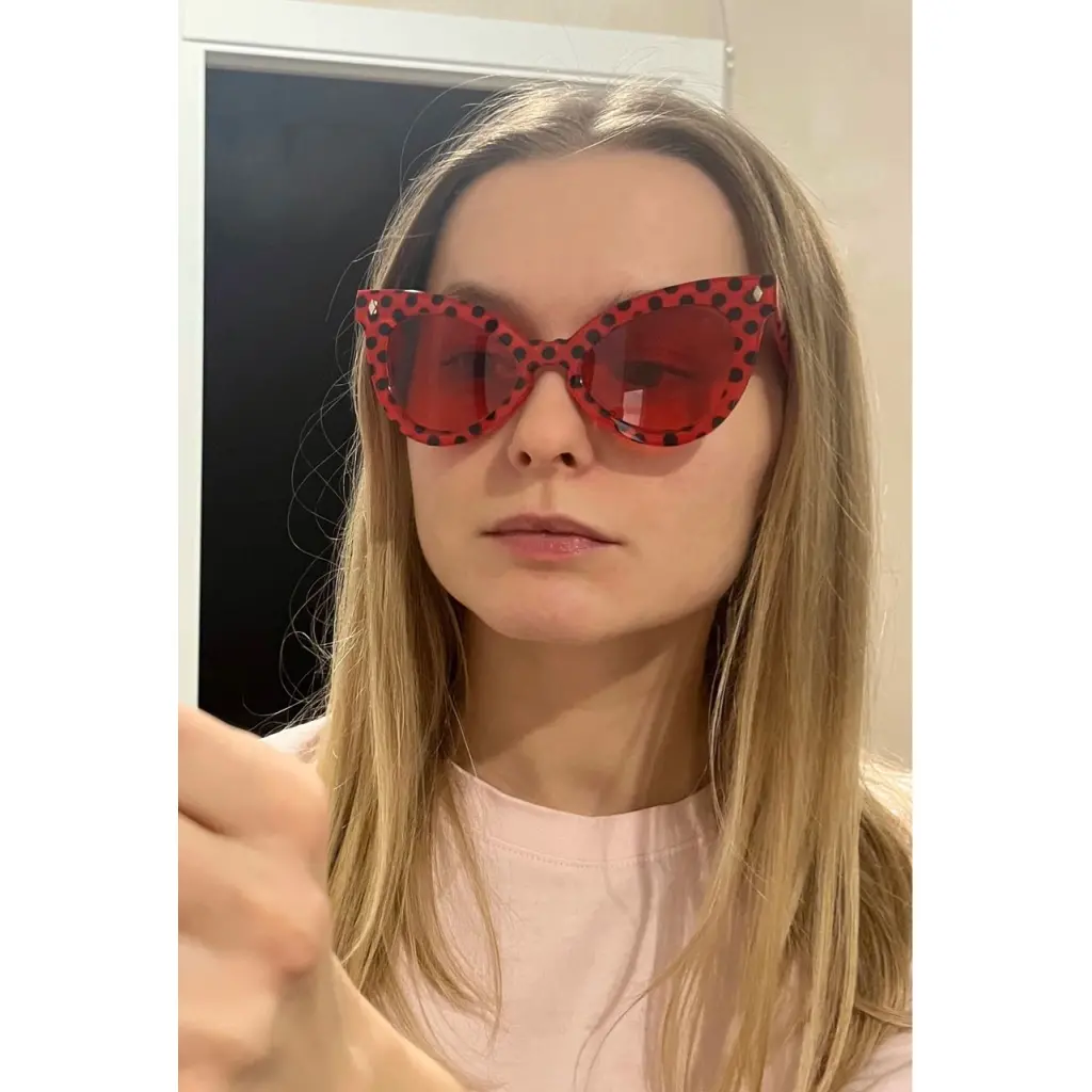 Солнцезащитные очки Push Button & Gentle Monster. Форма – «кошачий глаз». Красные линзы. Новые, полный комплект: чехол, тряпочка.