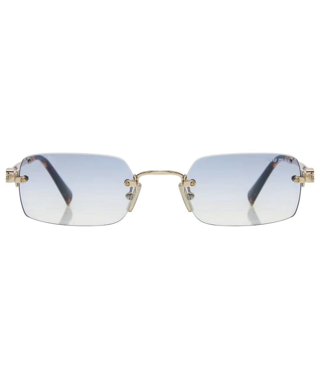 Миу Миу захватила мир штурмом своим перспективным подходом к дизайну и выражению личной идентичности. В комплекте с логотипами на храмах, эти солнцезащитные очки имеют золотистые проволочные оправы и прямоугольные линзы.