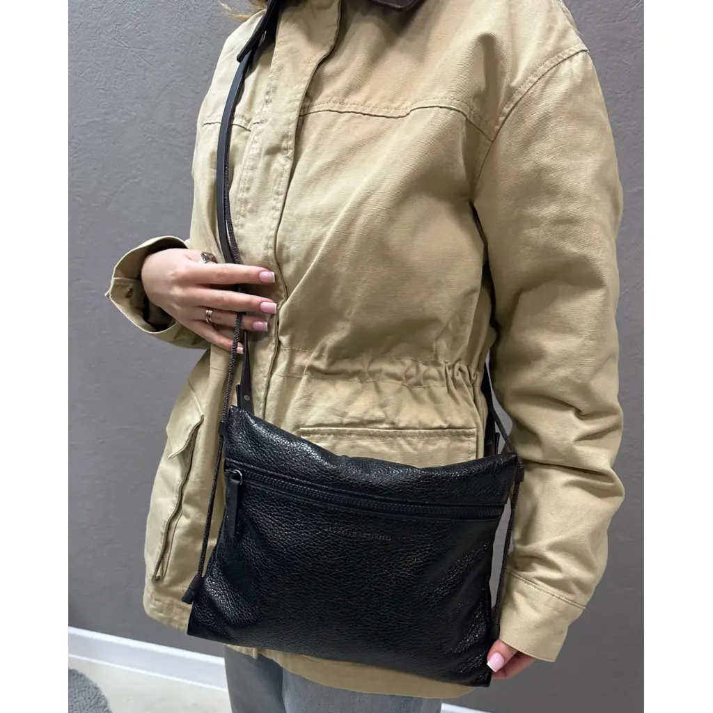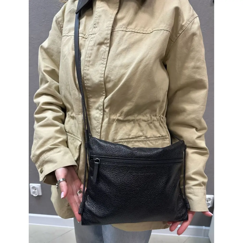 BRUNELLO CUCINELLI Антрацитовая кожаная сумка через плечо