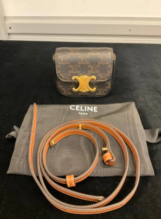 Celine Mini Claude In Triomphe Canvas And Calfskin