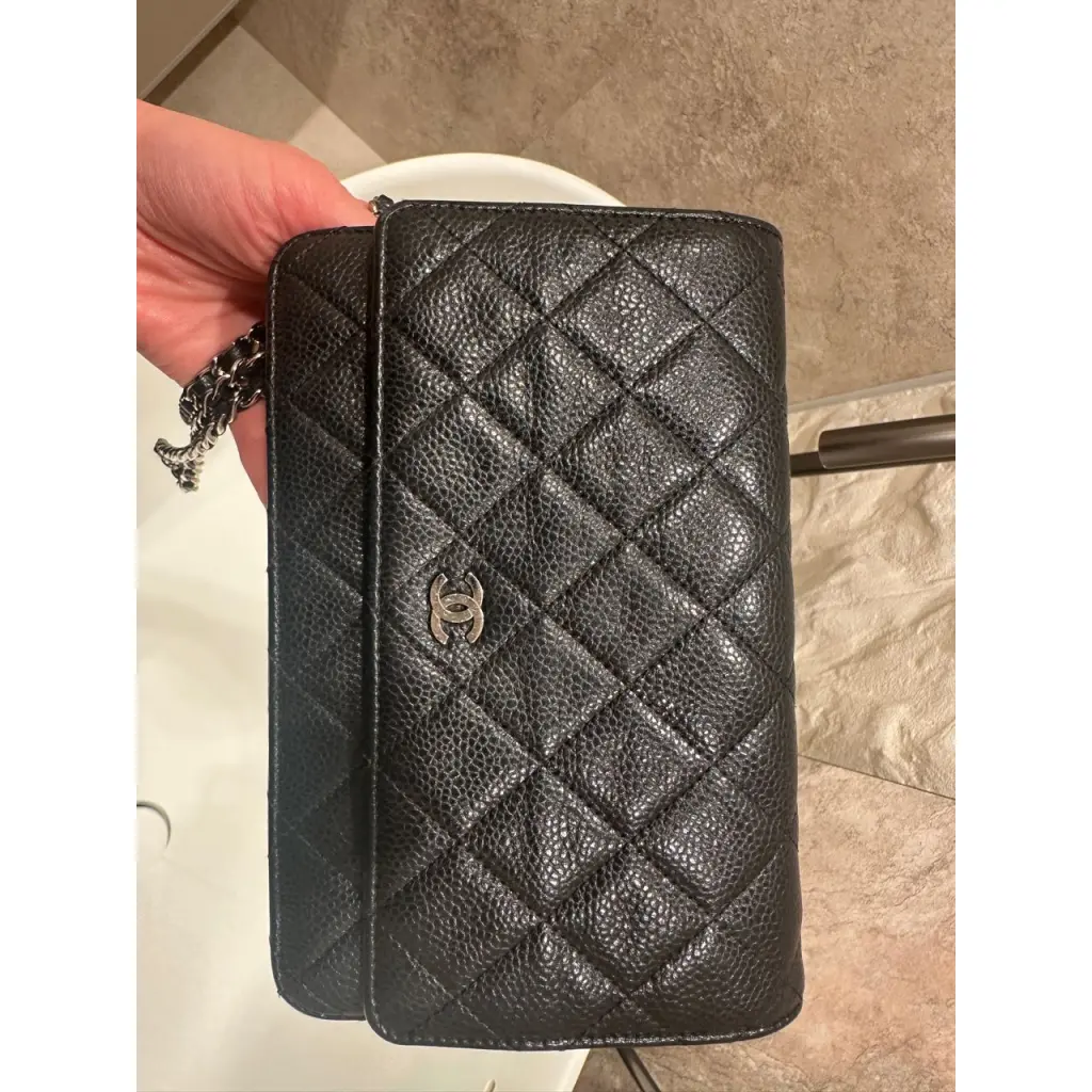 Woc Chanel черная кожа икра, фурнитура серебро, незначительные следы носки, видно на лого на фото