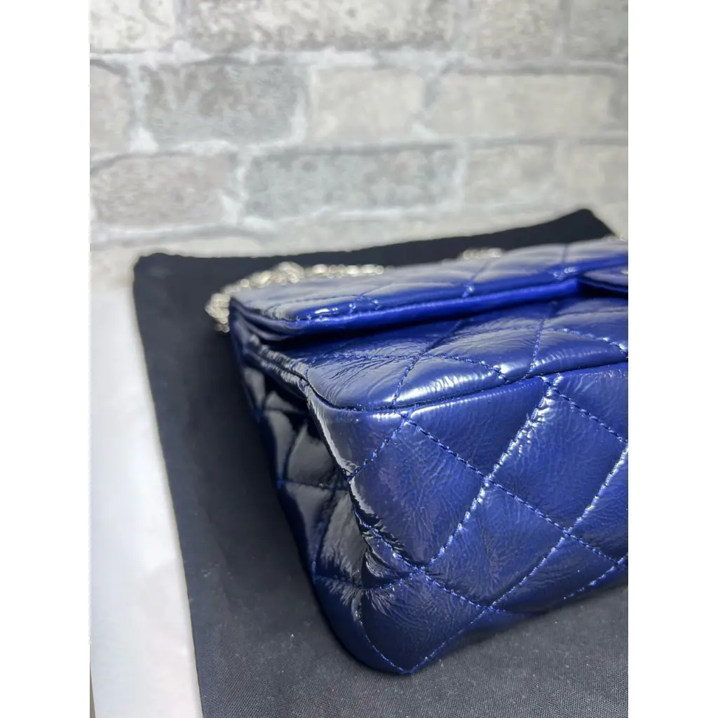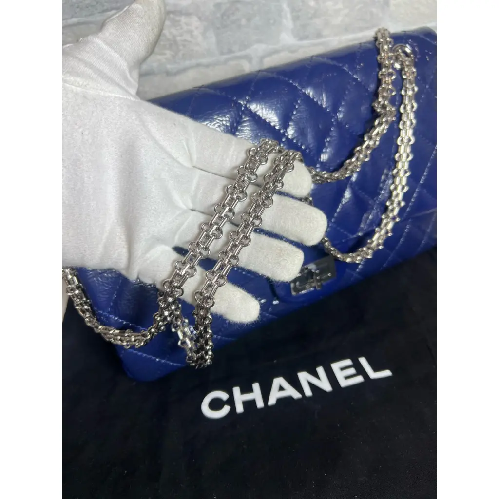 CHANEL Синяя сумка через плечо из лакированной кожи