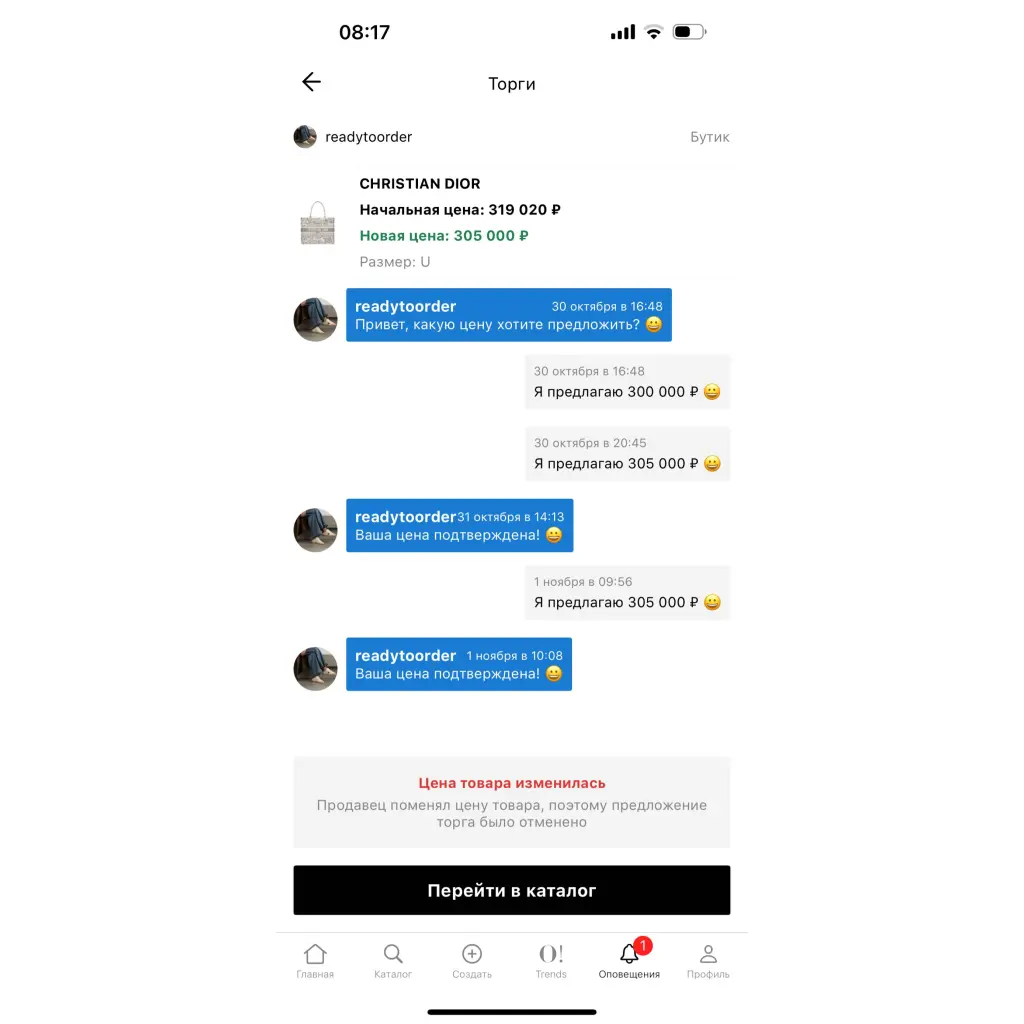 Доброе утро. Хотел сейчас оформить заказ, но у Вас поменялась цена и торг почему-то опять был отменен. С этого аккаунта у меня попытки закончились, тогда оформлю сейчас с моего второго аккаунта