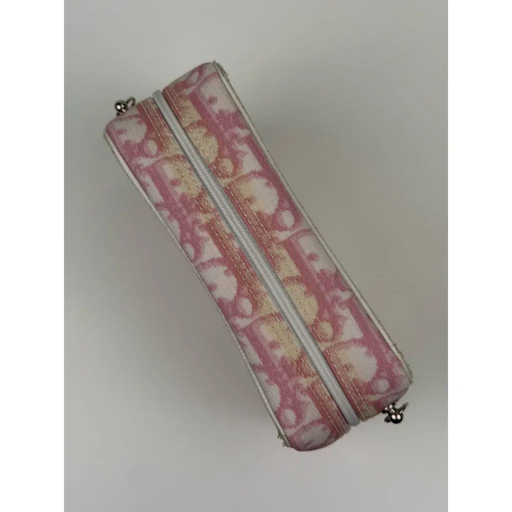 Сумка выполнена из розового канваса с фирменным монограммным узором Dior Trotter, дополнена белой окантовкой и нашивкой с цифрой “2” — знаковым элементом той эпохи. Регулируемый широкий ремень в спортивном стиле делает аксессуар удобным для повседневной носки через плечо.