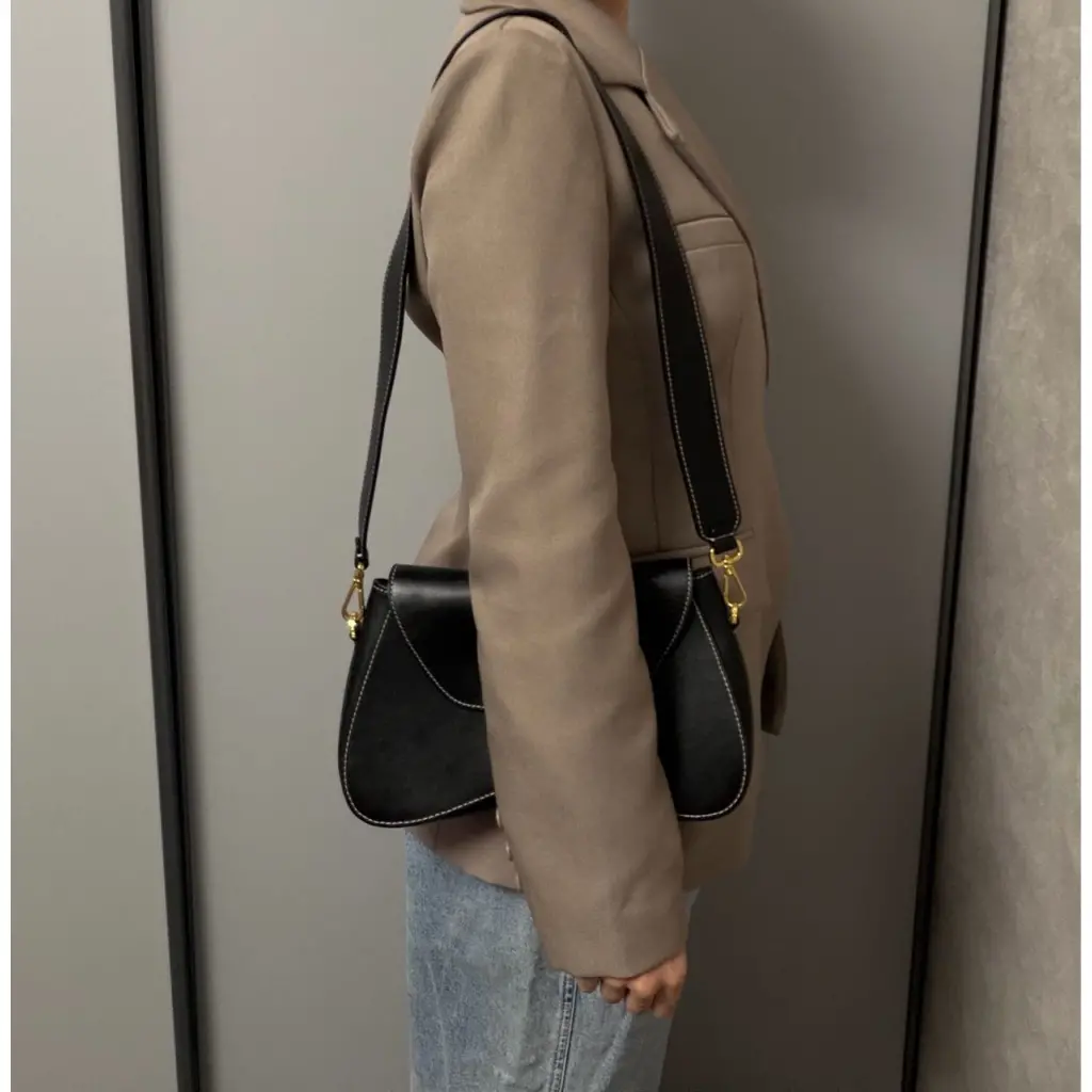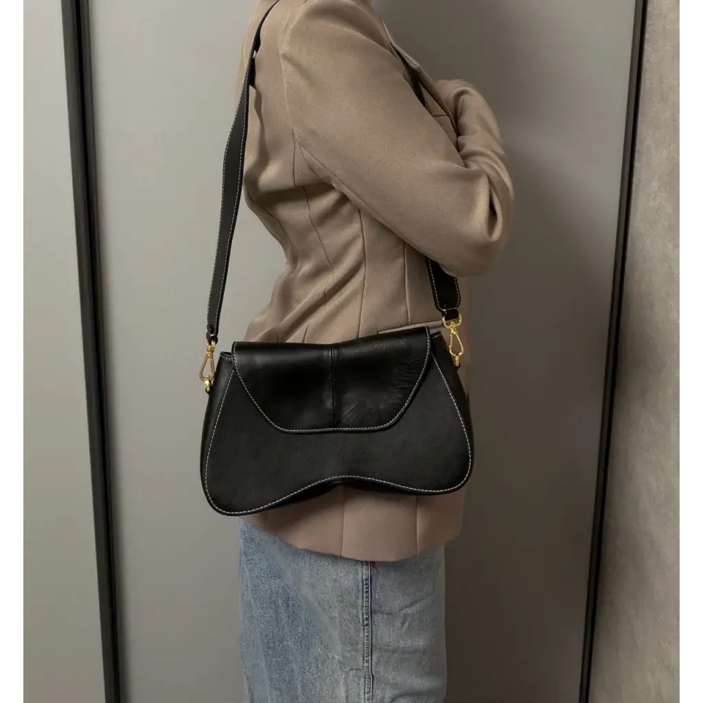 Черная кожаная сумка через плечо